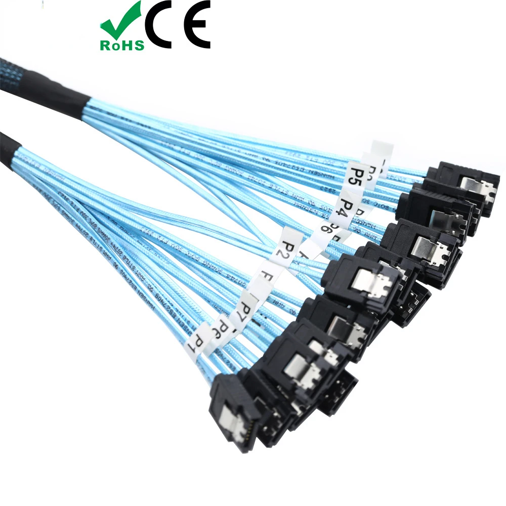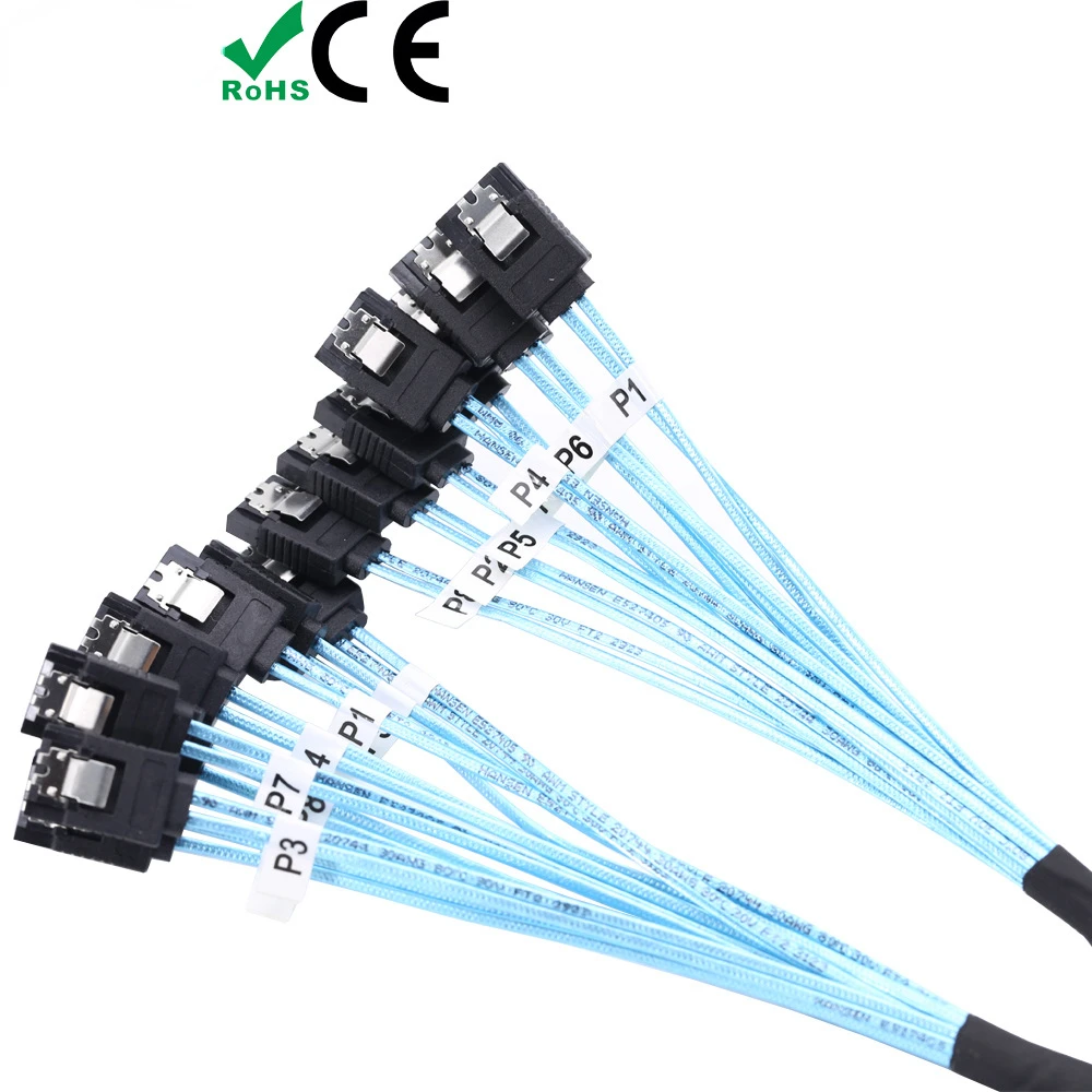 Comprar Cable Sata SAS de alta velocidad, 1M/0,5 M, 6Gbps, 6/8 puertos/juego, 7 pines, Sata a Sata, alta calidad para servidor de PC, minería HDD
