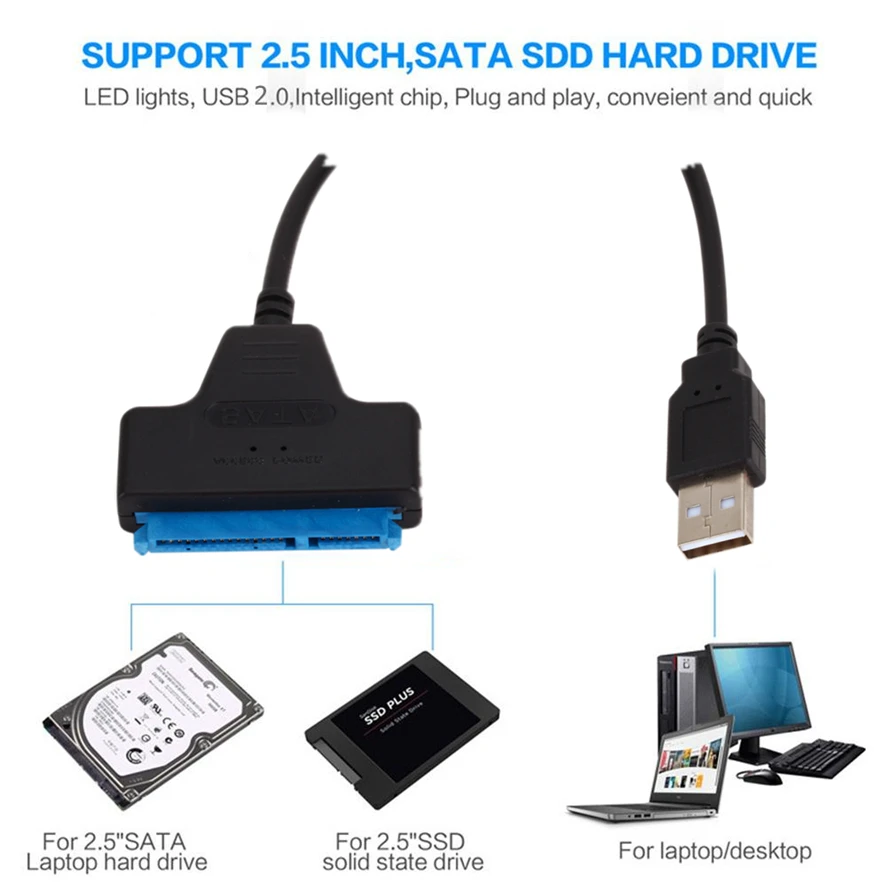 Cable SATA a USB 3.0/2.0 para disco duro SSD HDD externo de 2,5 pulgadas Adaptador SATA 3 de 22 pines Cable USB 3.0 a Sata III de hasta 6 Gbp