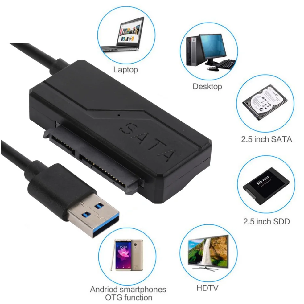 Especificaciones para este artículo: 1.Nombre del artículo: Adaptador SATA a USB 3.0 2.Tamaño del disco duro compatible: HDD SSD SATA de 2,5" y 3,5" 3.Interfaz USB: USB 3.0 4.Velocidad máxima: 5 Gbps 5.Adaptador de corriente: CC 12 V 2 A. 6.Sistema de soporte: Compatible con Windows 98, 2000, XP, Vista, 7, 8, 10 y Mac OS X. 8.Dispositivos compatibles: computadora portátil, de escritorio 9.Compatible con disco duro SATA: Sí 10.Compatible con disco duro IDE: No