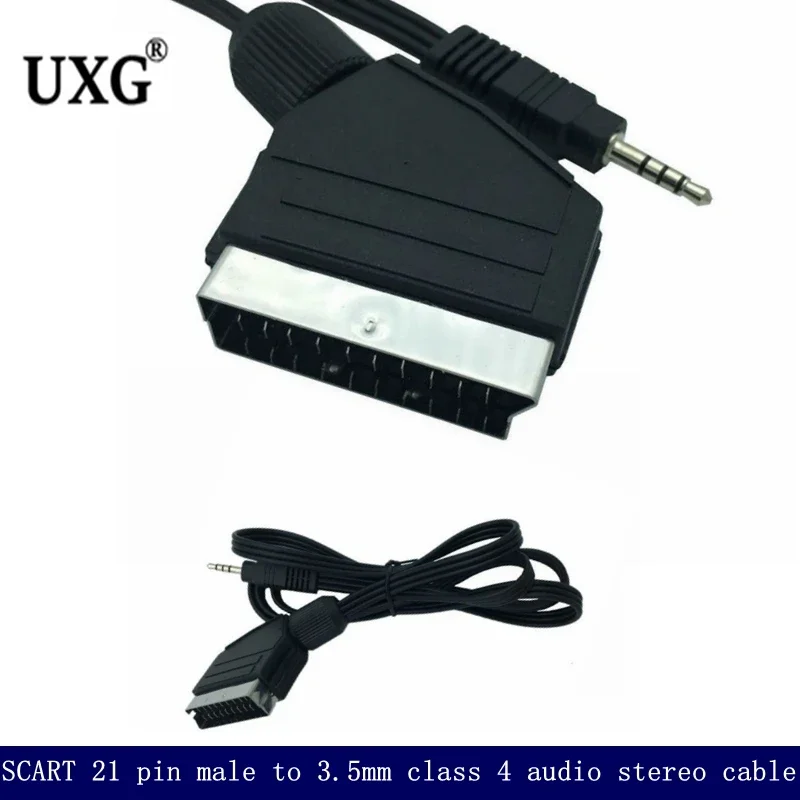 Cable Scart Jack Scart de 21 pines a conector estéreo macho de 3,5 mm TV Full HD Múltiples protecciones Conector de precisión Cable de Audio de 1,5 m/5 pies