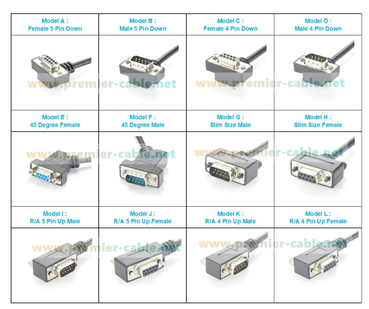 Nombre del producto: Cable de interfaz serie DB9 RS232 de un solo extremo en ángulo izquierdo