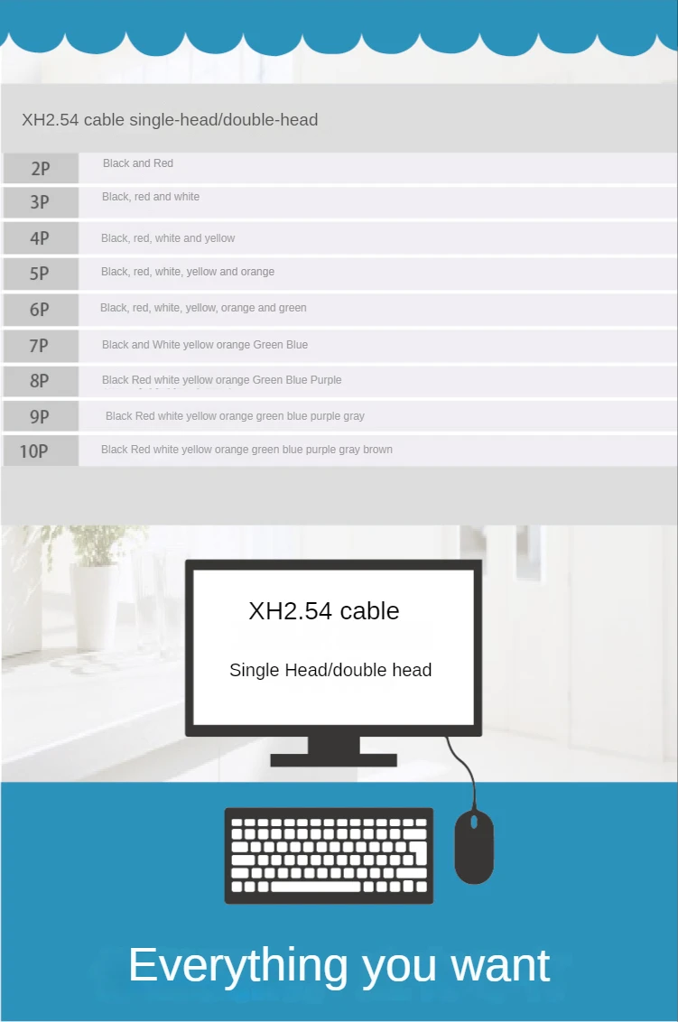 Cable de silicona 26AWG Xh2.54 30 núcleos Terminal de depósito doble único cable eléctrico 2P 3P 4P 5P 6P 7P 8P 9P 10P para electrónica