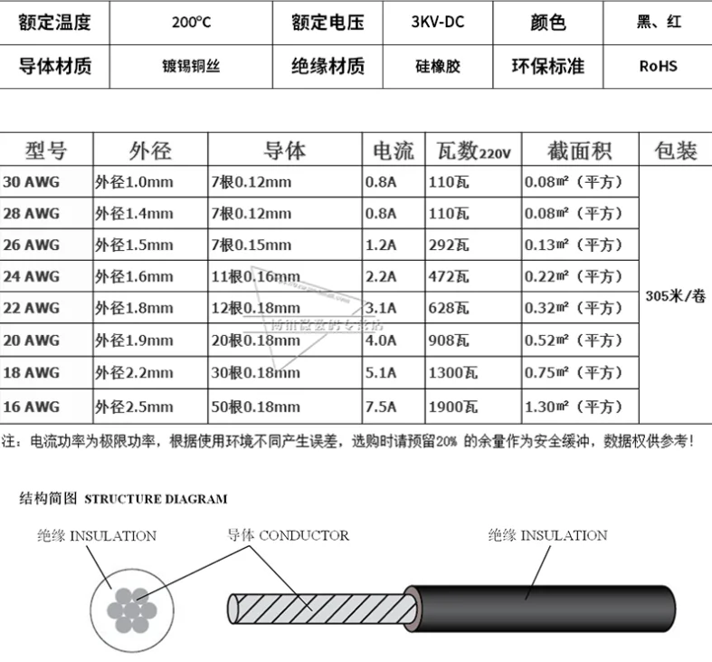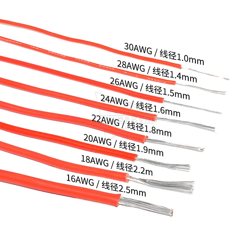 Comprar Cable de silicona de alta temperatura de 5 metros, 30 #28/26/24/22/20/18, 16 AWG, 5m, rojo, 5m, negro, Cable de silicona estañado Koper