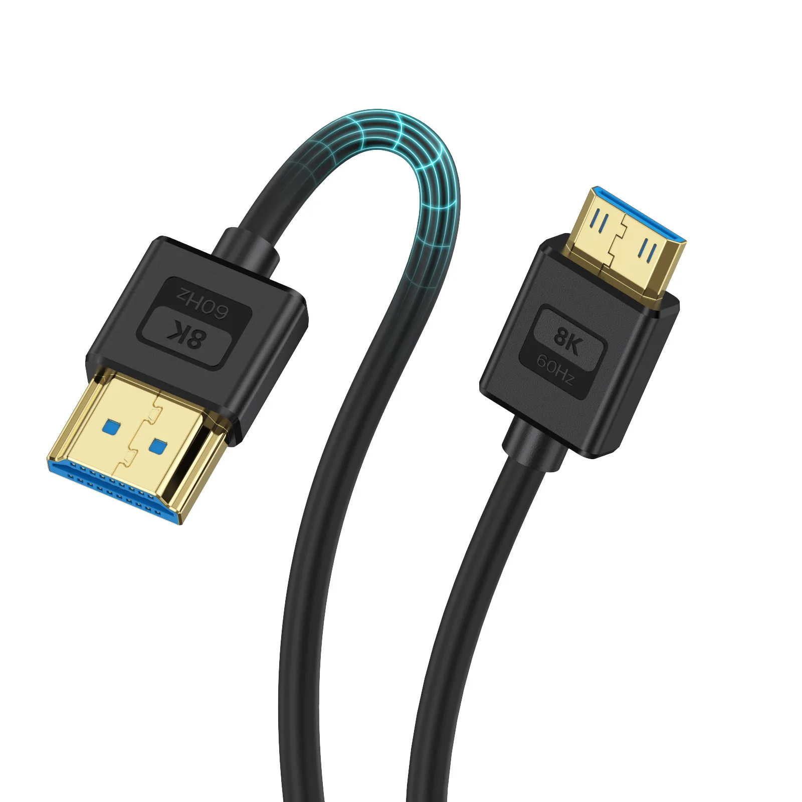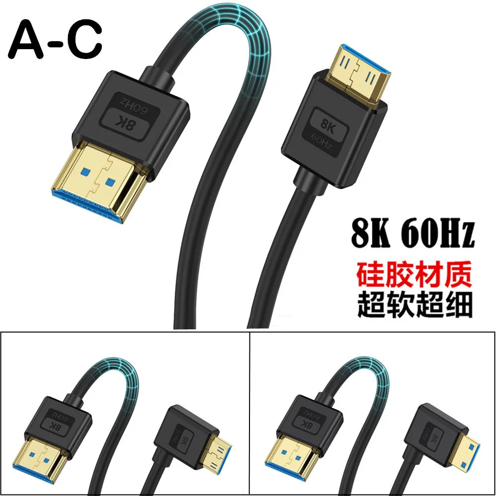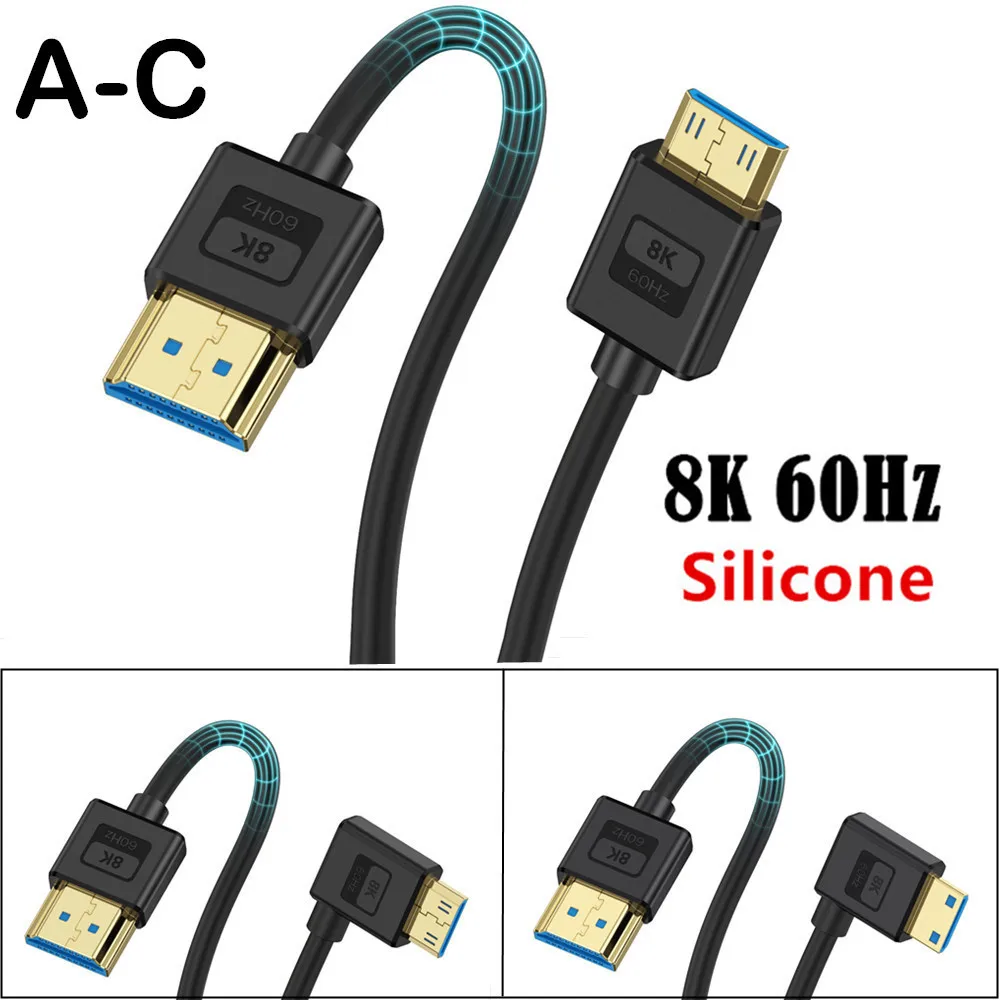 Cable HDMI de silicona 8K Super Extreme Slim 8K @ 60Hz Mini HDMI a HDMI 2,1 Cable ,Ultra alta velocidad 48Gbps Cable HDMI Delgado Φ 4,0mm,4K @ 120Hz Compatible con cámara, videocámara, tableta gráfica/tarjeta de video, portátil y más