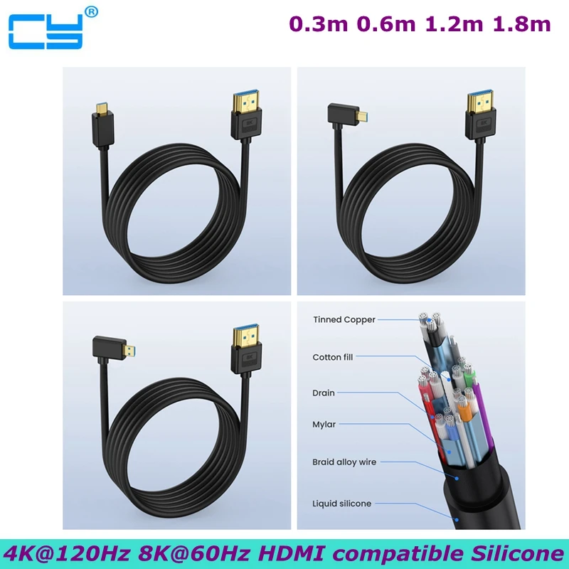 Comprar Cable de silicona Compatible con HDMI a Micro HDMI versión 2,1, Cable de conexión de alta definición para cámara Digital HD 8K @ 60Hz 4K @ 120Hz