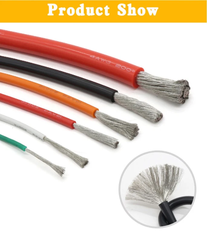 Cable de silicona Flexible suave de 1M/5M 30 28 26 24 22 20 18 16 15 14 13 12 10 AWG cable resistente al calor de cobre estañado de alta temperatura