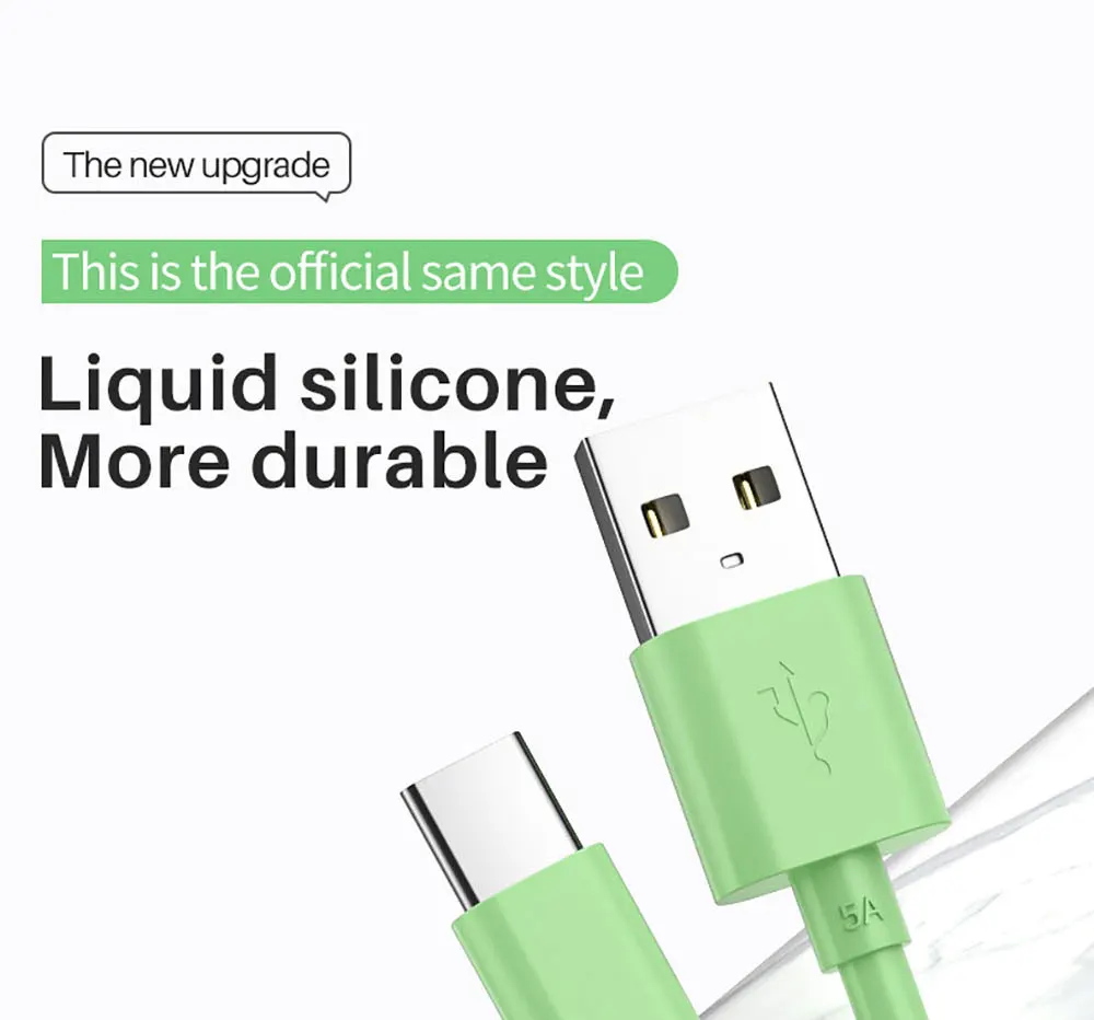 Comprar Cable de silicona líquida 5A tipo C para Xiaomi, Huawei, OPPO VIVO, accesorios de teléfono móvil, cargador de Cable USB C de carga rápida