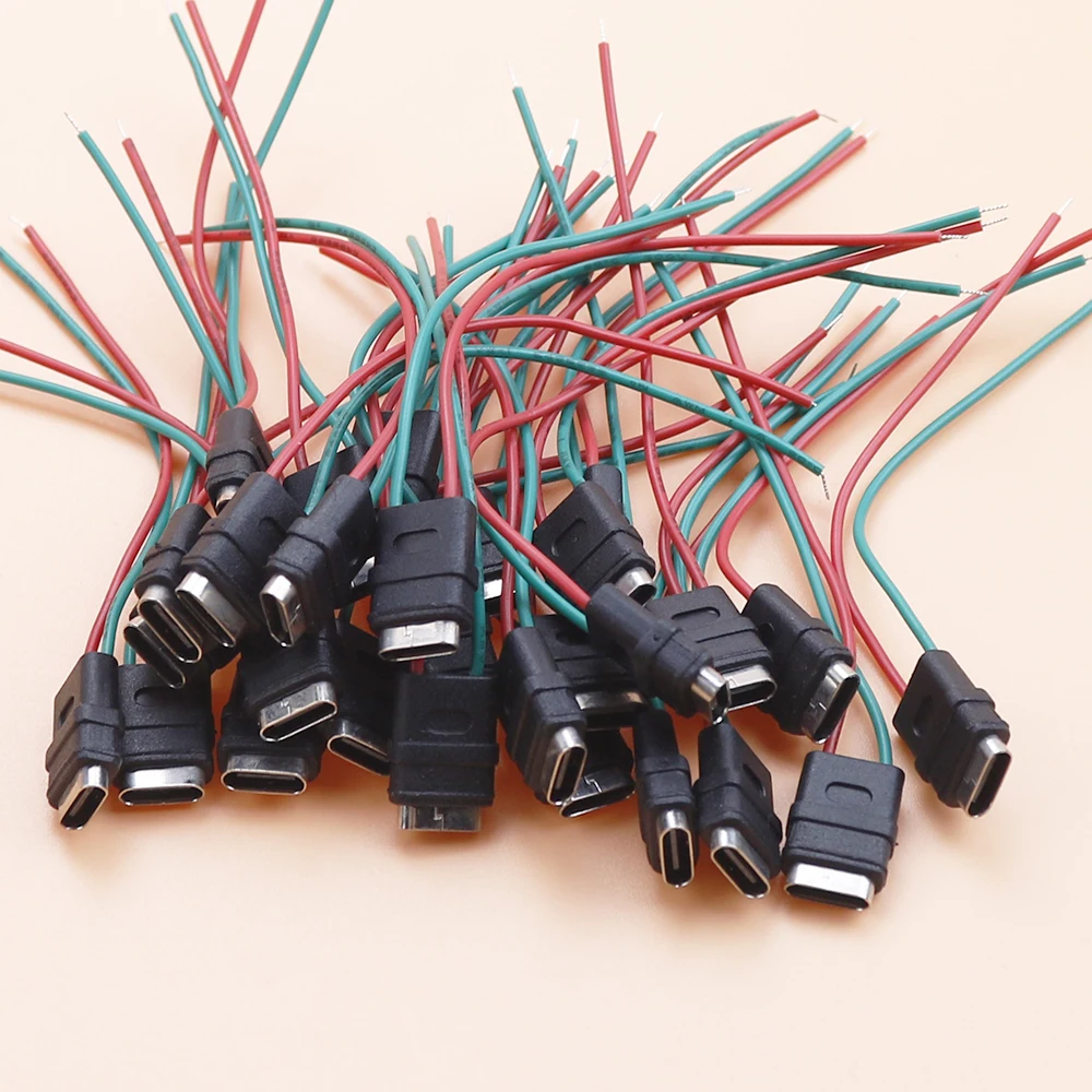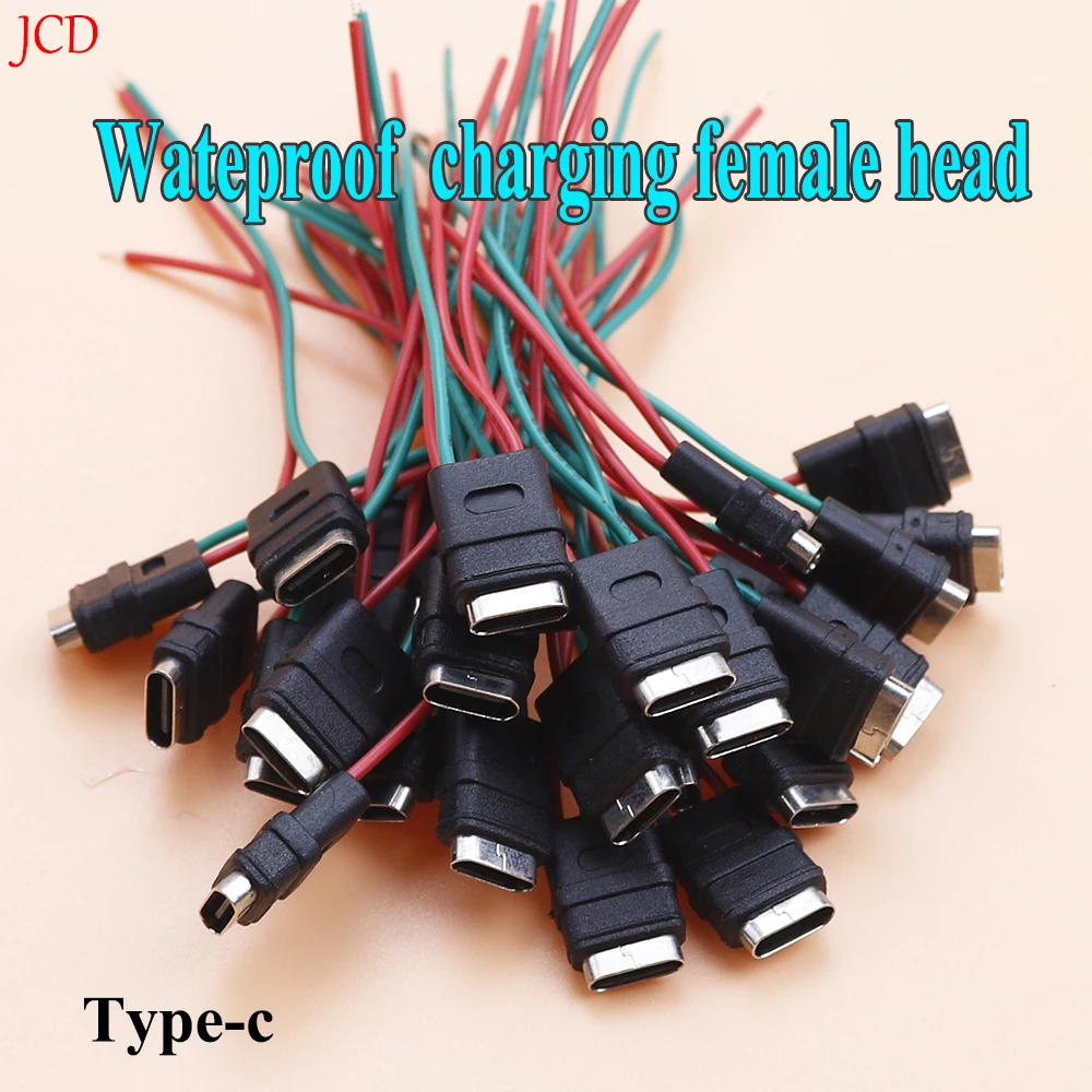 1 pieza de alambre de soldadura USB tipo C enchufe hembra impermeable IPX7 tipo C 2 pines con conector de cabeza de carga de Cable