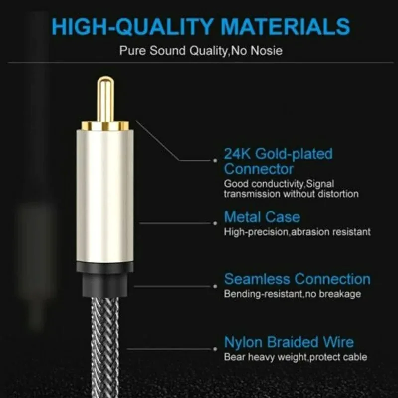 RCA Male to Male: High-purity coaxial cable equipped with an RCA port, also can be used with S/PDIF Digital Interface Format), digital, analog and composite video interfaces.
