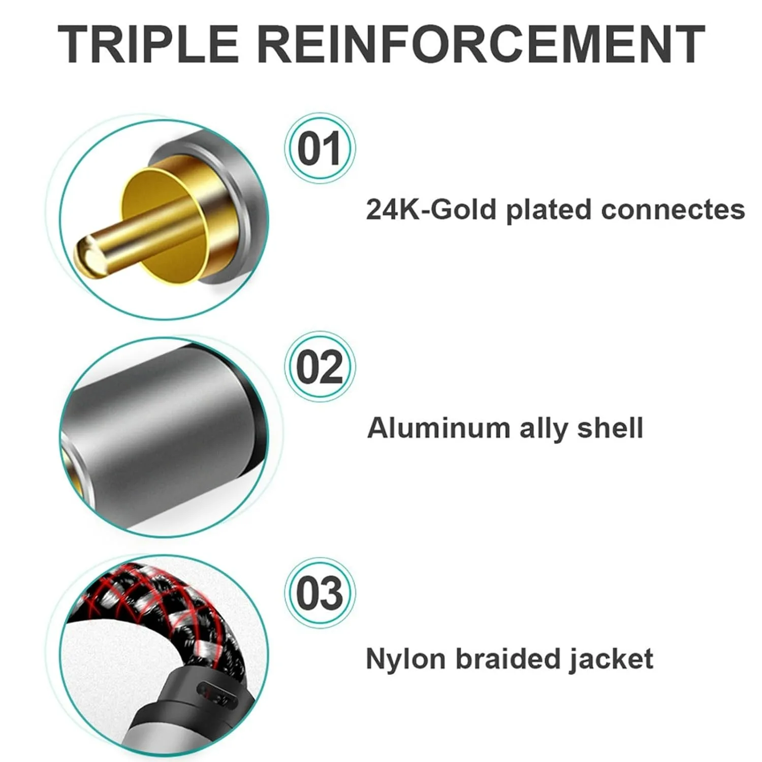 Excellent Surround Sound: With the high-density silver-plated copper core and triple shielding layer, which provides more pure and clear sound trnamit. Our premium subwoofer cable support Dolby, DTS, 5.1 channel, Immersive surround sound takes you having a cinematic experience at home.