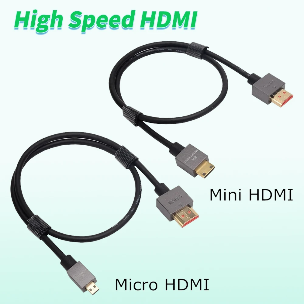 OD 3,8mm Super Soft Micro HDMI-compatible y Mini HDMI-compatible Versión 2,1 Cable Delgado macho 8K HD Ligero Portátil 7680*4320P/2160P/1440P/1080P/720P
