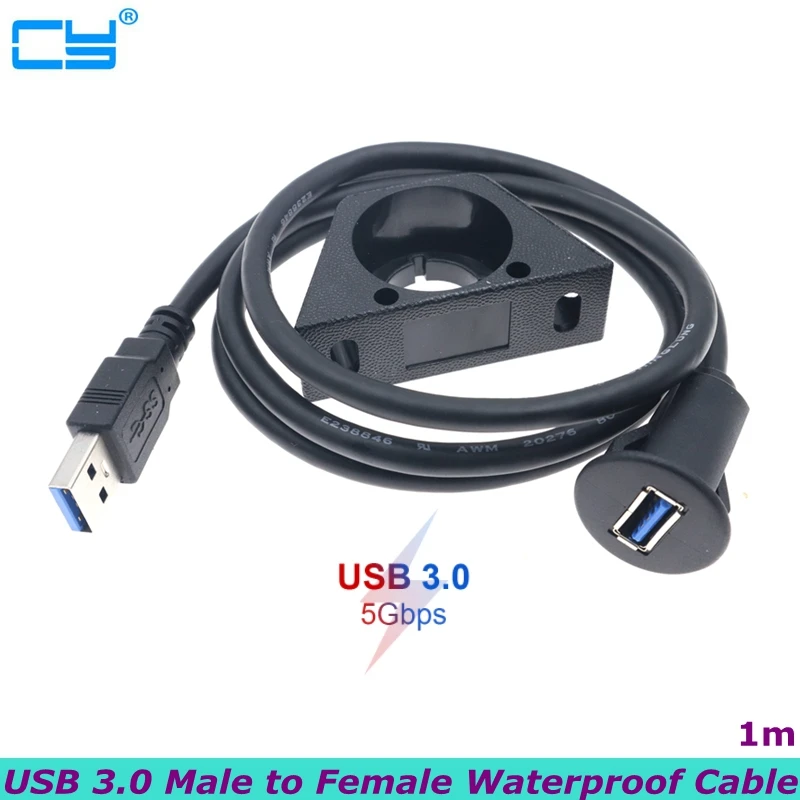 Comprar Cable de tablero de Panel de montaje empotrado USB 3,0 macho a hembra de alta velocidad de 1m impermeable con soporte blindado para coche motocicleta barco