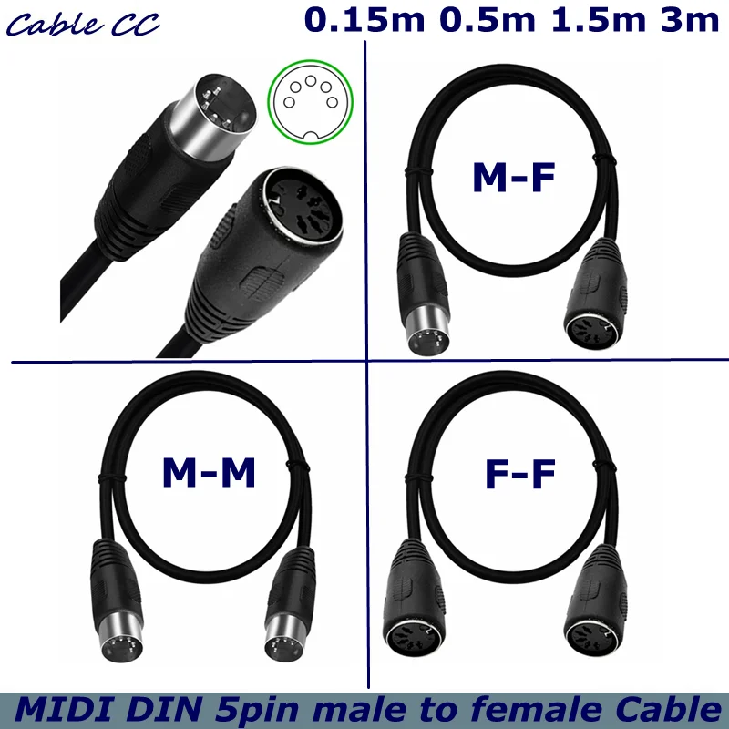 Comprar Cable de tarjeta de sonido de conexión de teclado MIDI Cable de extensión de conexión DIN de 5 pines macho a hembra para TV, cámara de vigilancia, LED