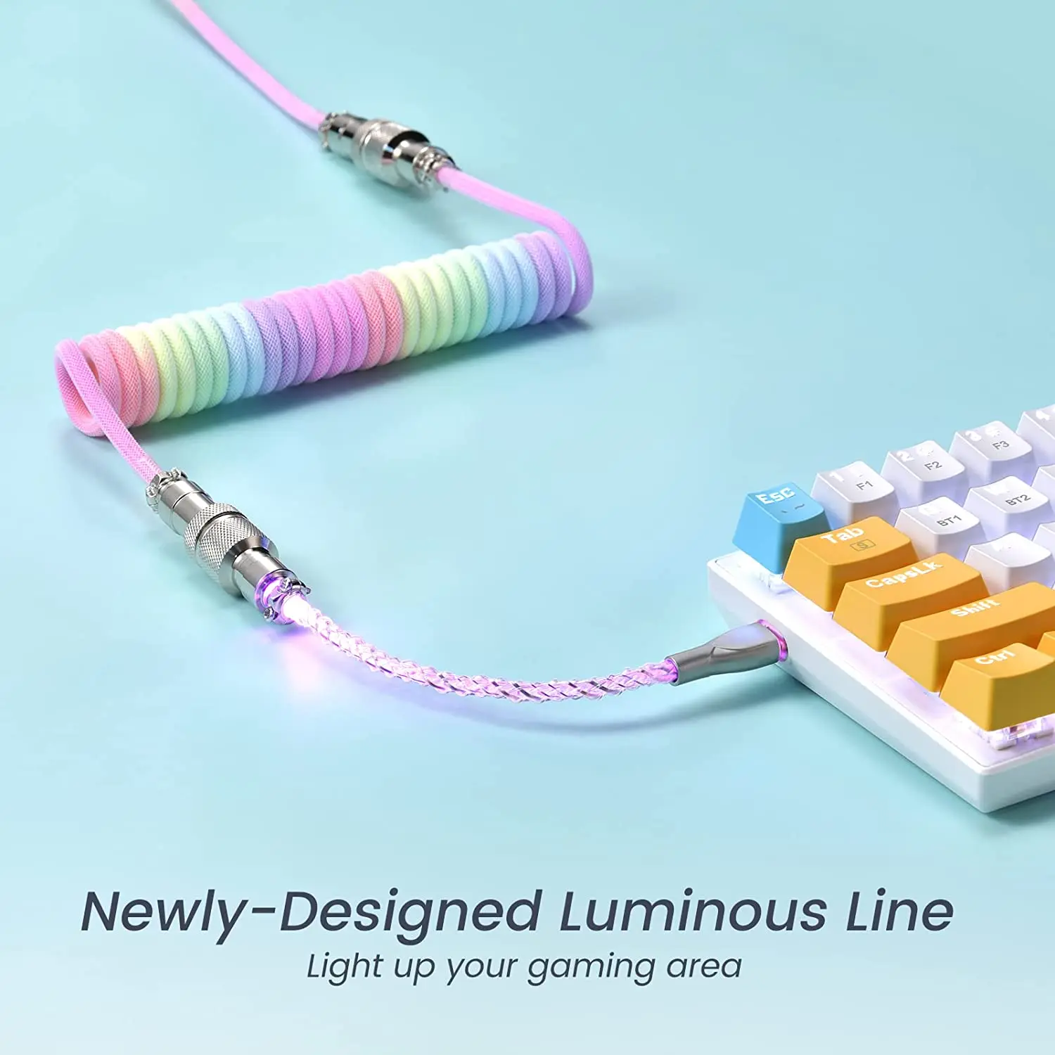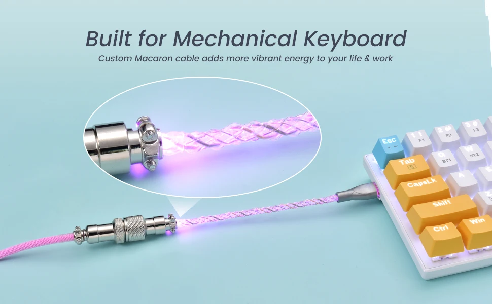 Cable de teclado en espiral para iluminación, Cable USB C con línea RGB, Cable de teclado mecánico, Cable de teclado de aviador de doble manga