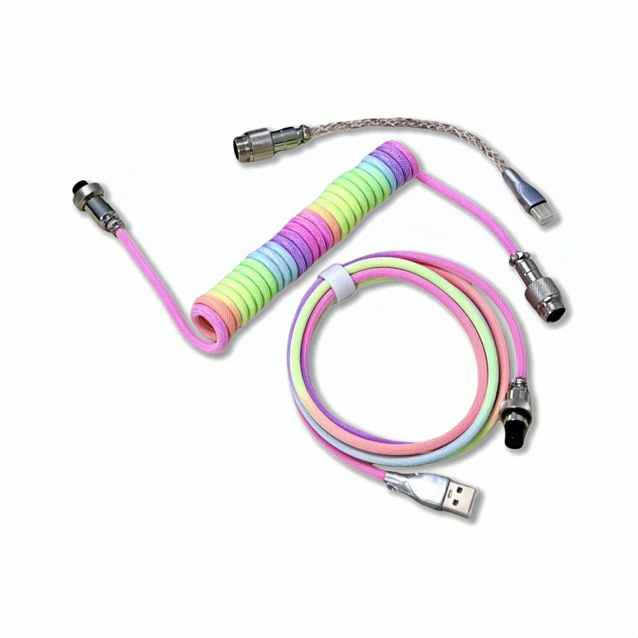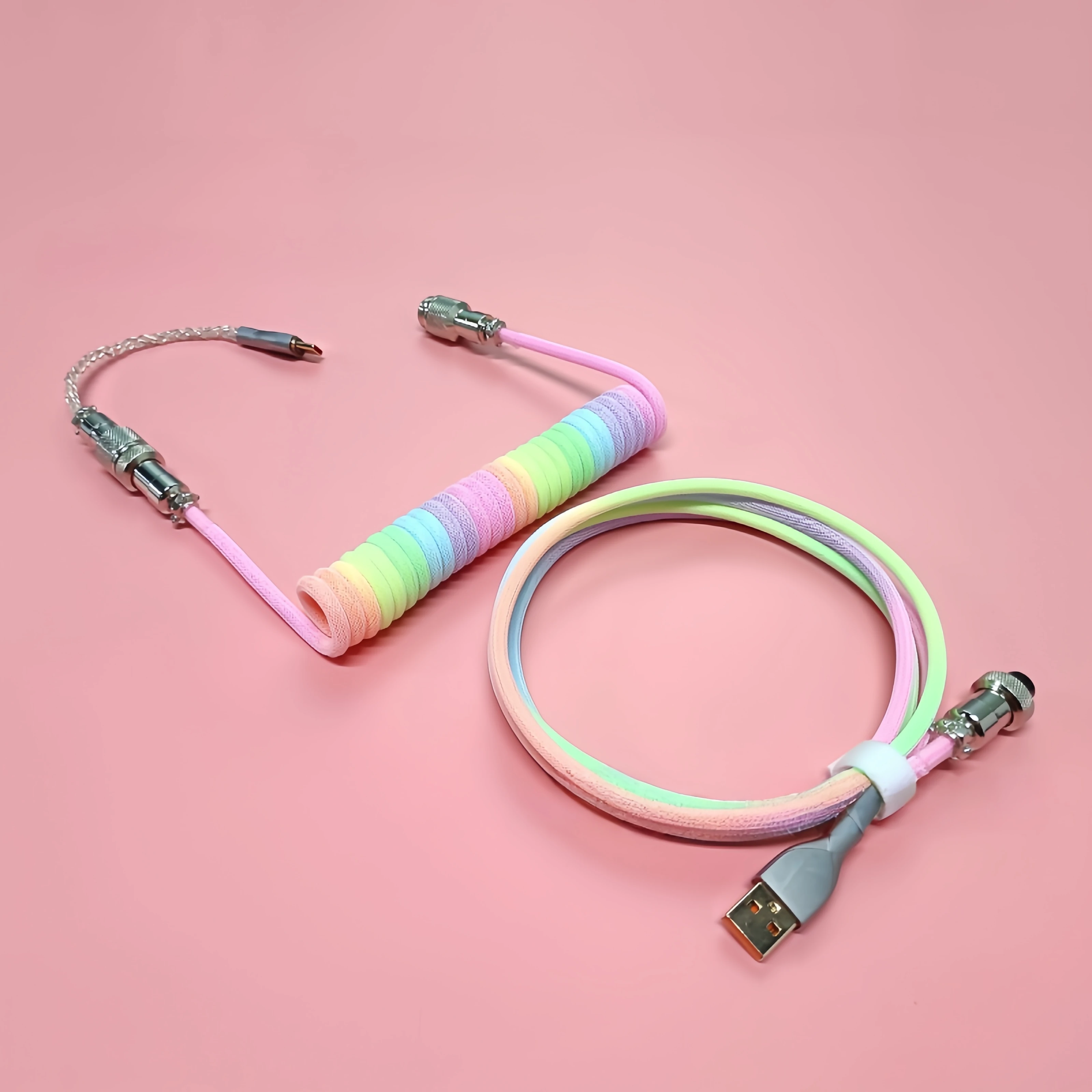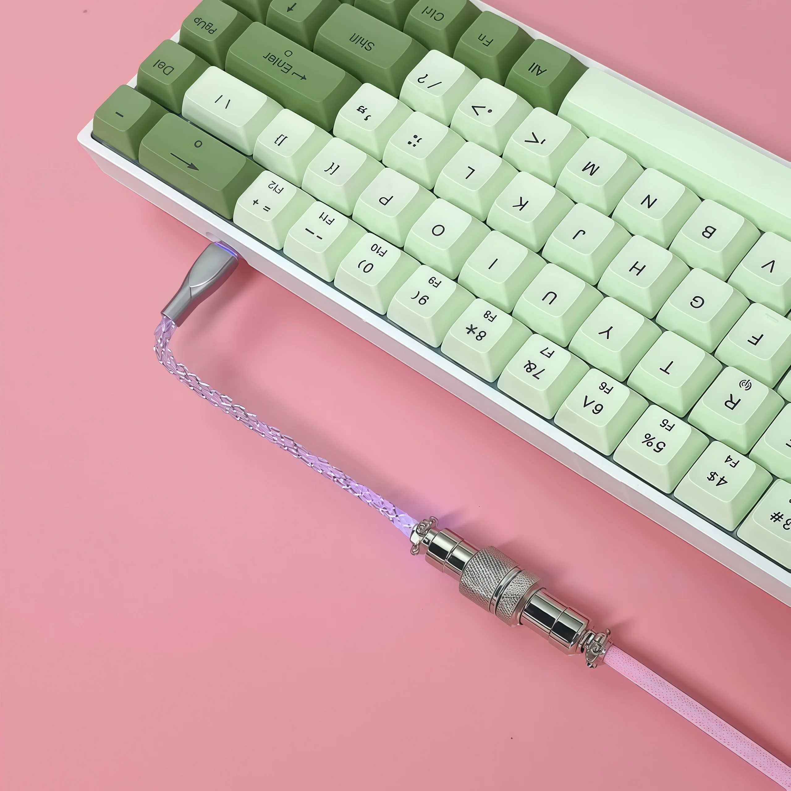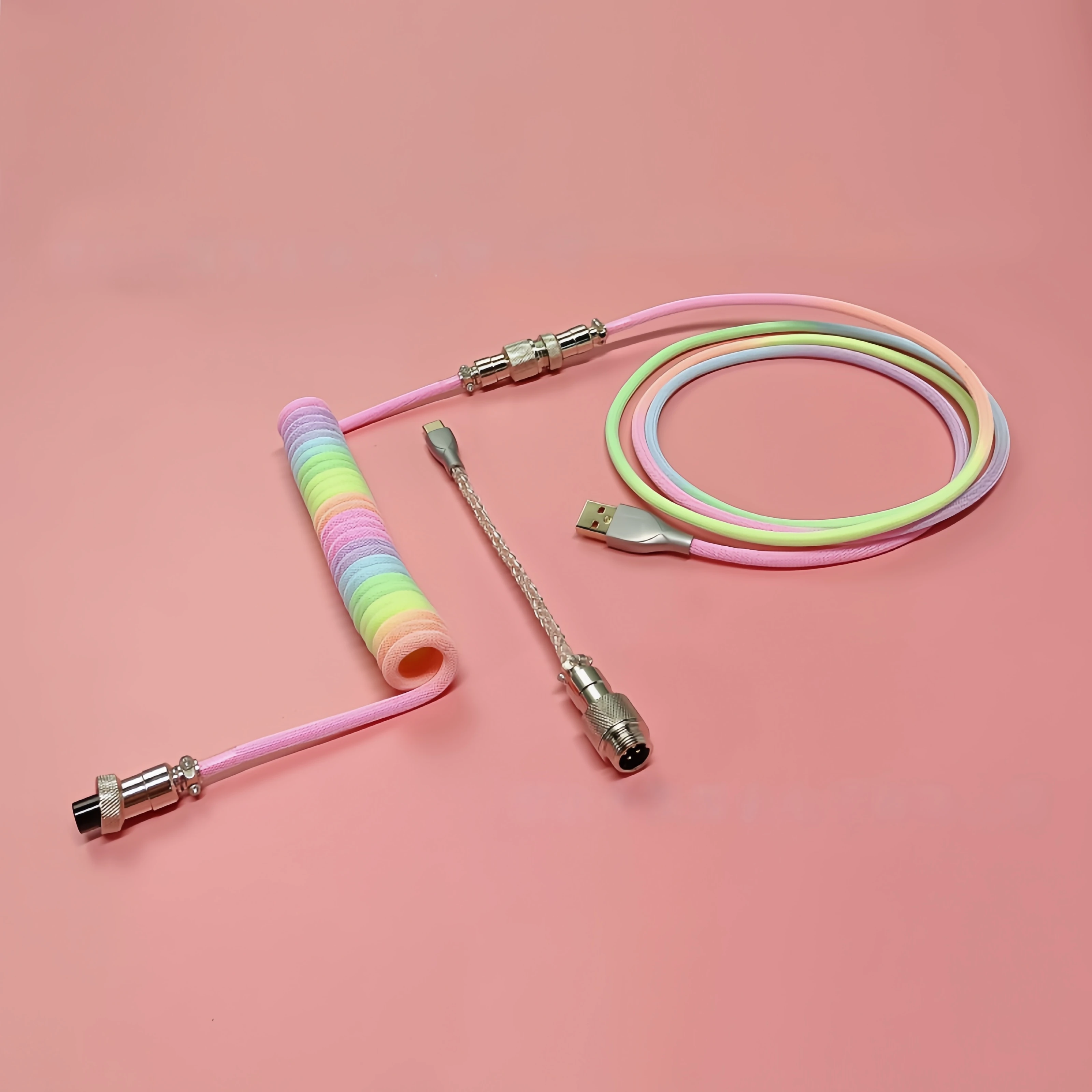 Cable de teclado RGB brillante: cable trenzado con enchufe de aviación de 3 segmentos, transferencia rápida de datos tipo C a USB-A, accesorio de teclado de moda