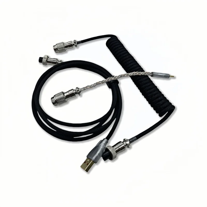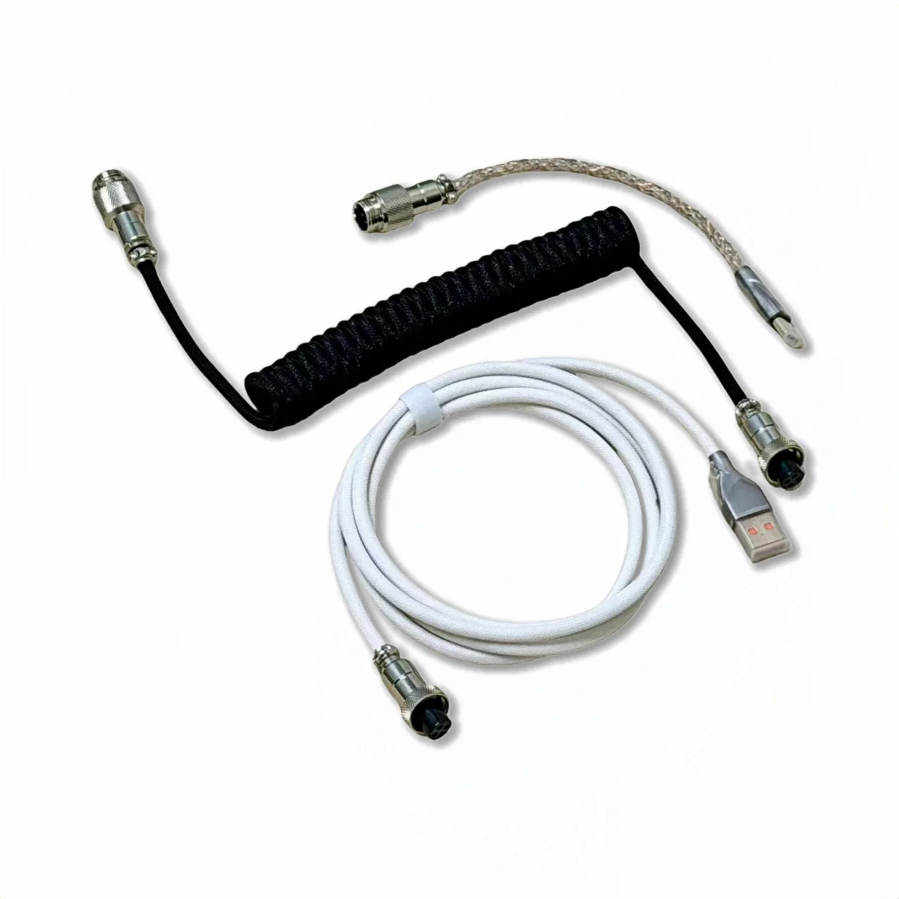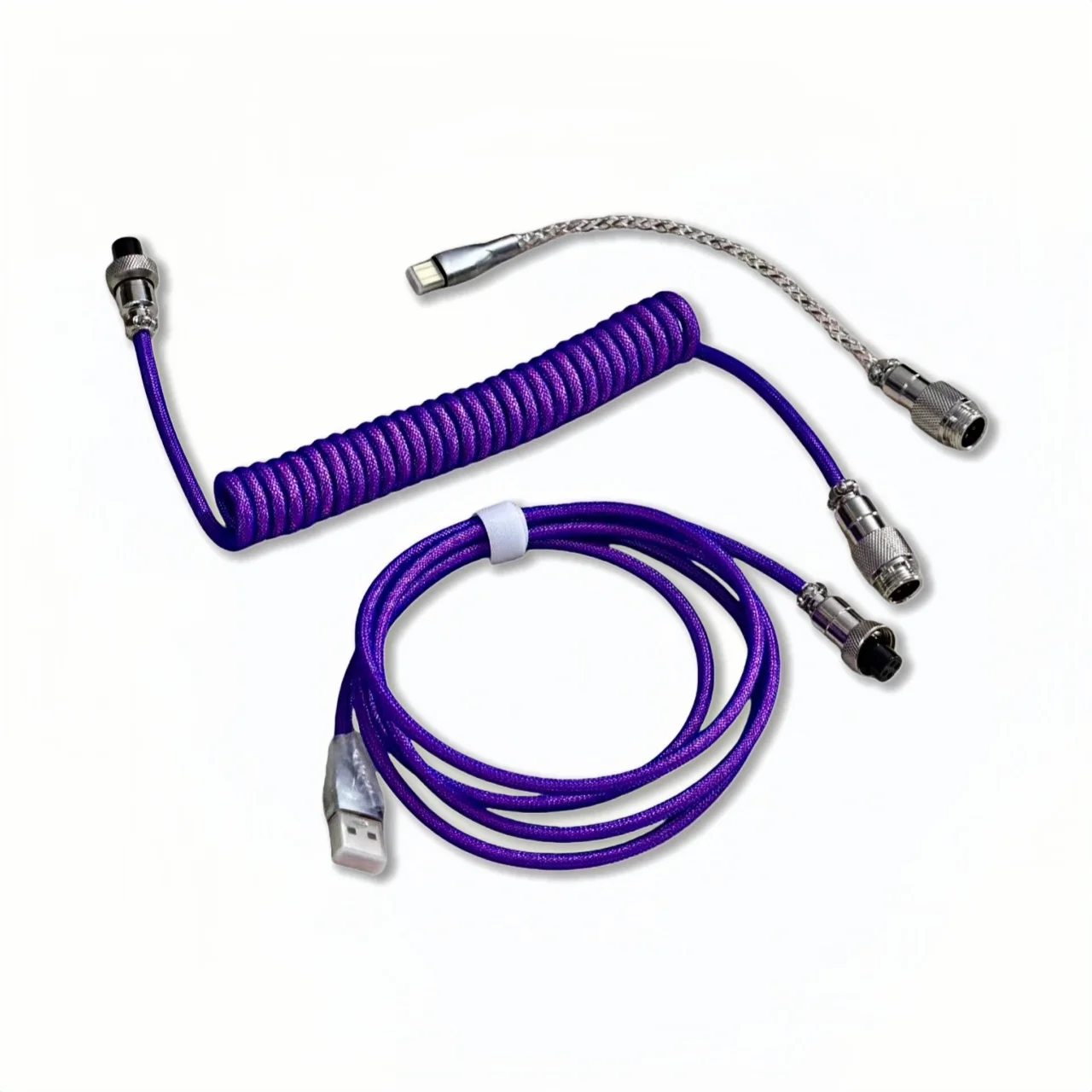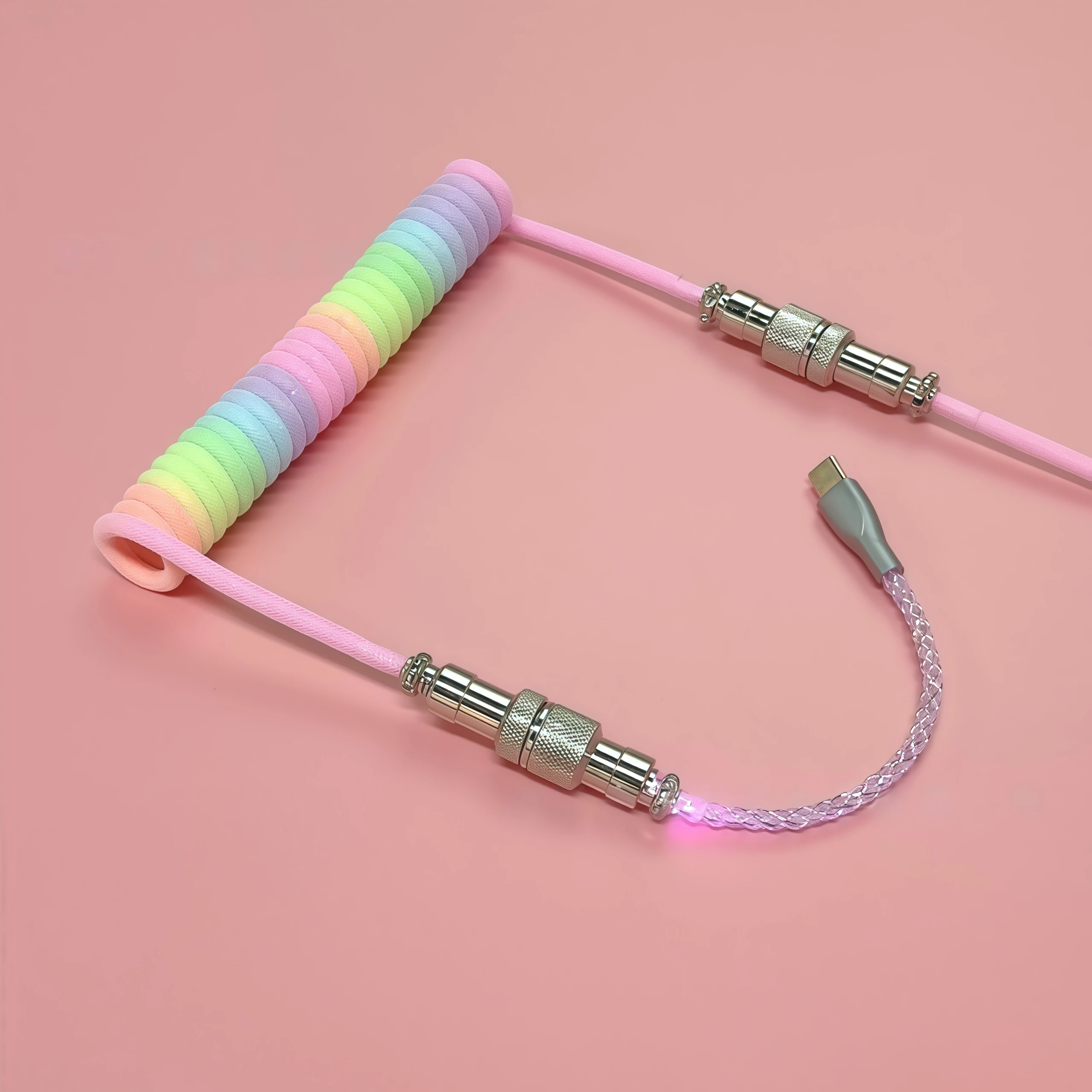 Cable de teclado RGB brillante: cable trenzado con enchufe de aviación de 3 segmentos, transferencia rápida de datos tipo C a USB-A, accesorio de teclado de moda