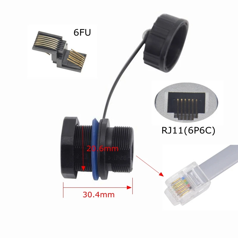 Cable telefónico resistente al agua conector de enchufe RJ 11 M20 6P6C adaptador hembra extensión de enchufe de cristal para teléfono de cabeza recta
