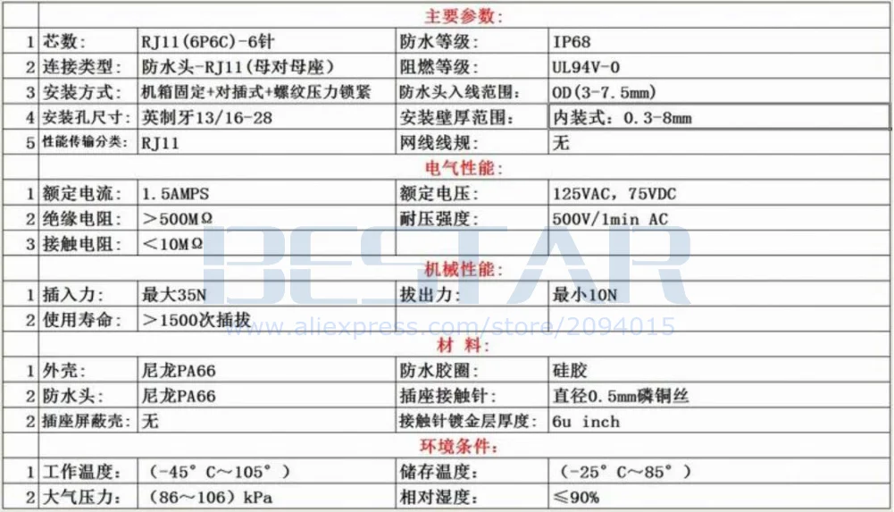 1.Conector de enchufe impermeable RJ11 M20 hembra a hembra
