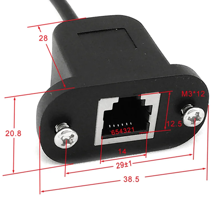Cable de teléfono de montaje en panel RJ12 6P6C de 25cm con tornillos M3