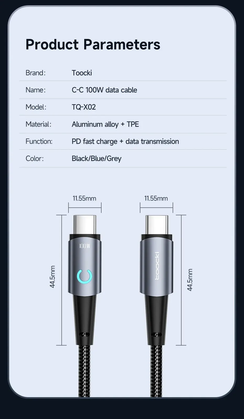 Nombre: cable de datos C-C 100W material: aleación de aluminio + TPE