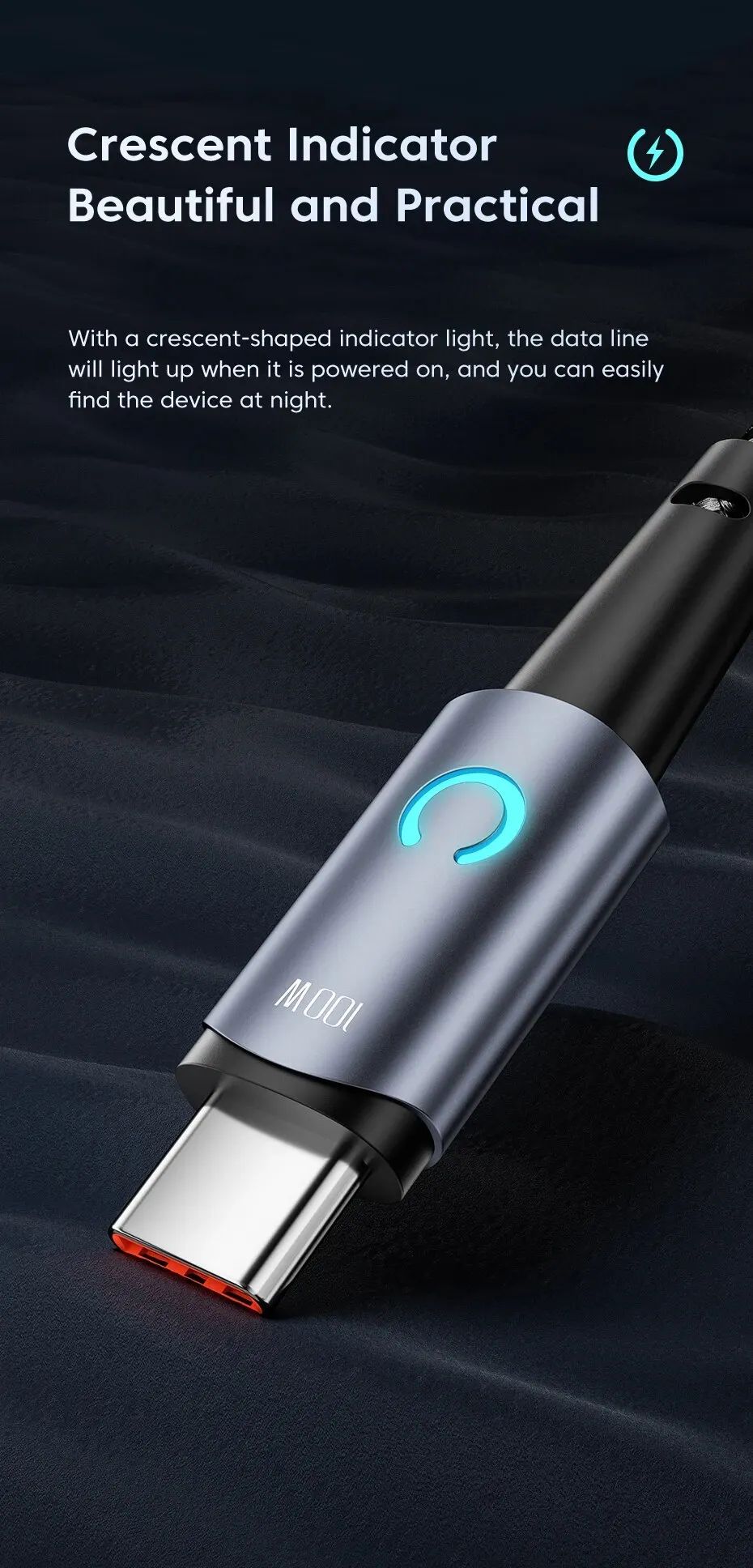 • Característica del LED :La función LED en el cable hace que sea fácil encontrar su dispositivo en la oscuridad.