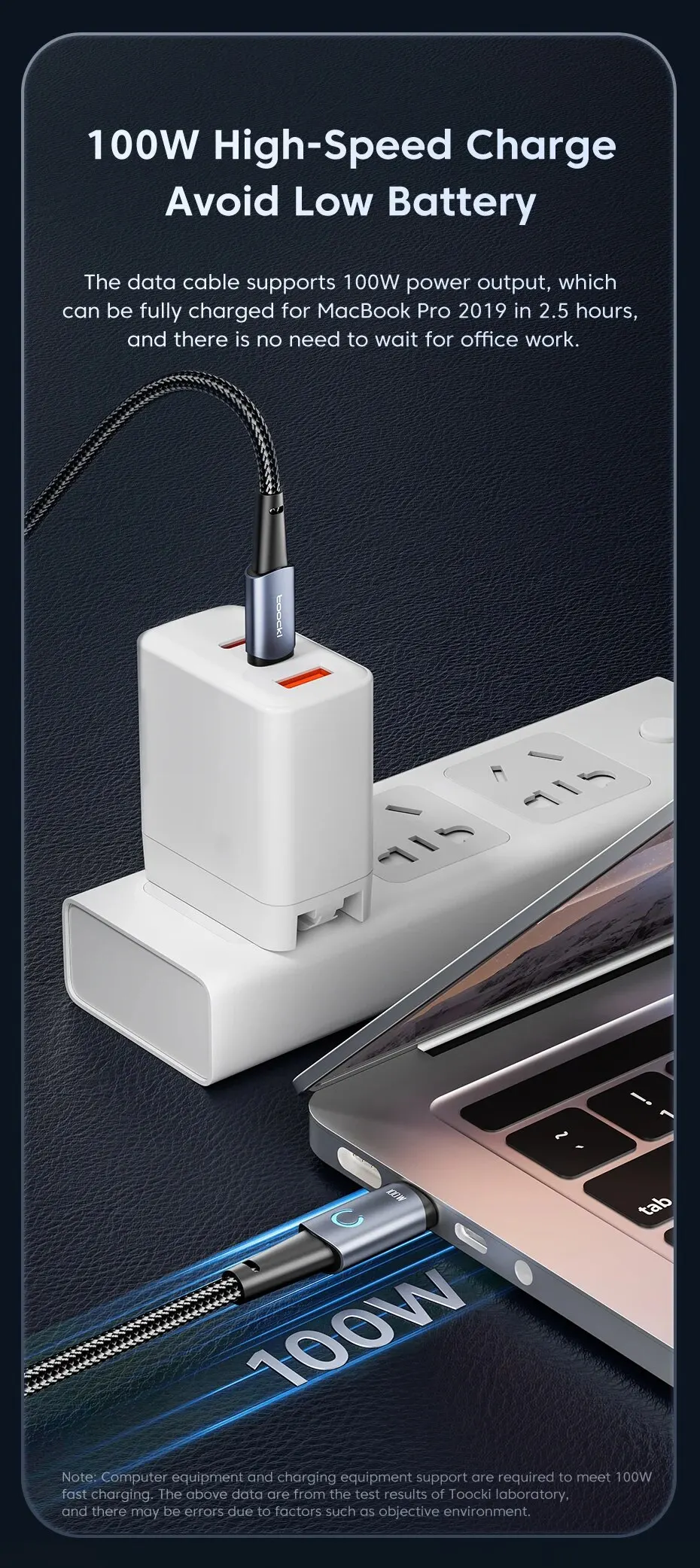 Se requiere equipo informático y soporte de equipo de carga para cumplir con 100W de carga rápida. Los datos anteriores son de los resultados de las pruebas del laboratorio Toocki, y puede haber errores debido a factores como el entorno objetivo. Tenemos dos cables de alimentación, por favor revise el modelo cuando pague la orden.