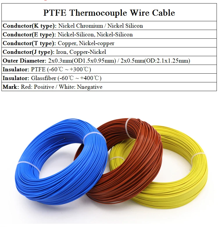 Cable termopar de buena calidad. Es delgado: tamaño externo 1 mm x 1,7 mm. Recubrimiento de buena calidad. Estoy satisfecho.