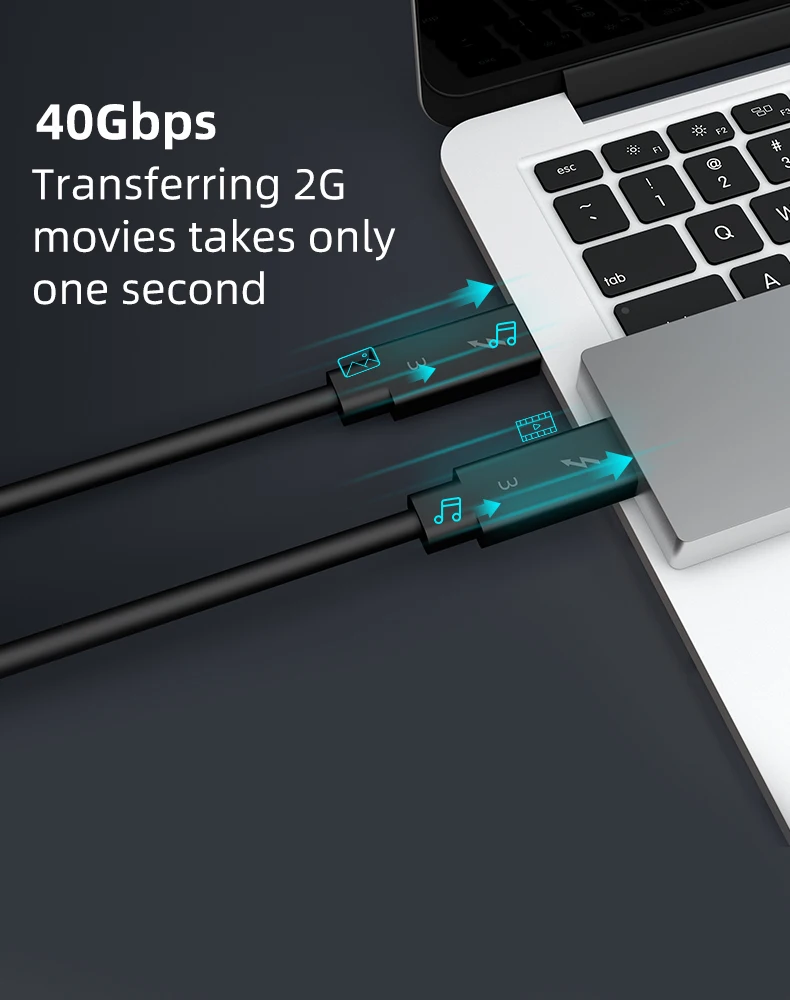 Cable Thunderbolt 3 macho a Thunderbolt 3 40Gbps para PC LaptopThunderbolt 3 macho a Thunderbolt 3 macho Cable de 40Gbps para PC y portátil