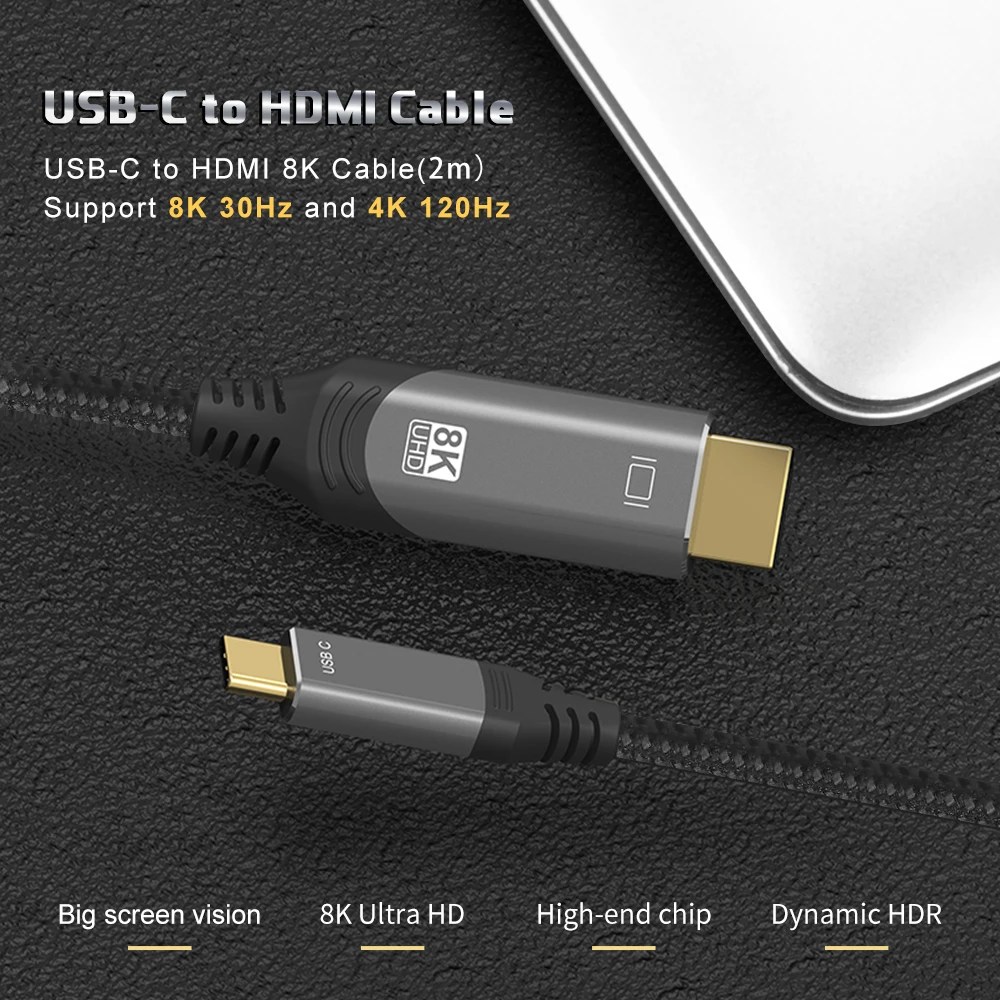 Cable 8K compatible con USB 3,1 a HDMI, 1,8 m, 7680 4320 X, 8K a 30Hz, 4K a 120Hz, UHD HDR, alta velocidad, 48Gbps, Thunderbolt 3, compatible con proyectores y monitores HDTV