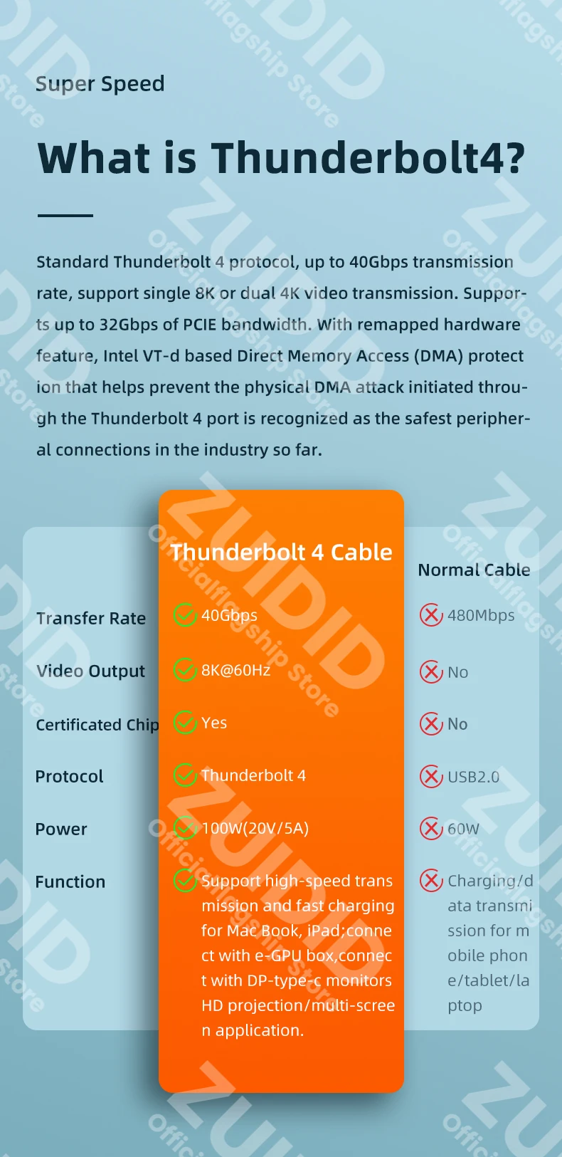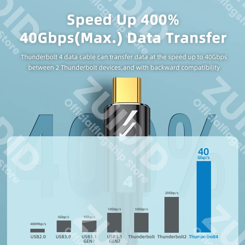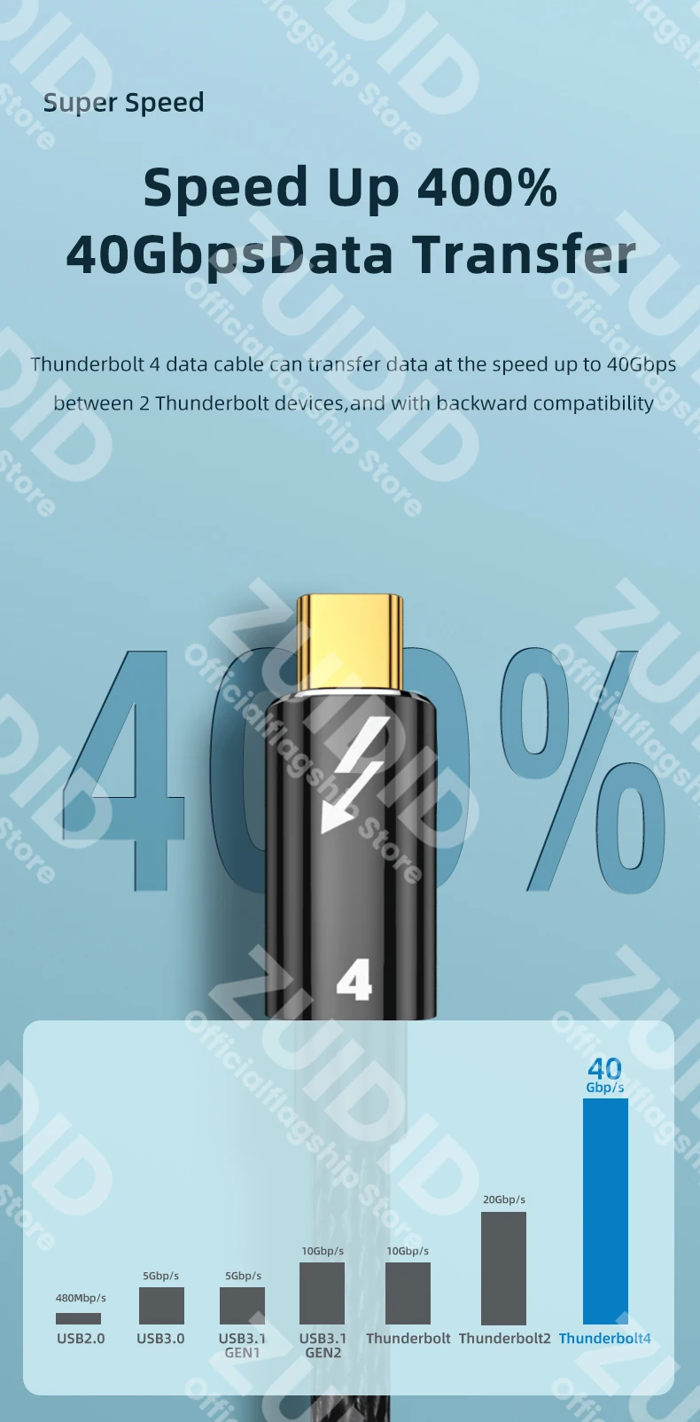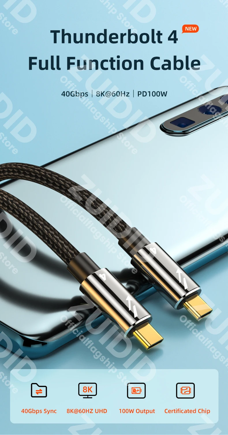 Comprar Cable Thunderbolt 4/3 USB4.0 40gbps USB C a tipo C PD 100W 5A 8K @ 60Hz, Cable de USB-C de transferencia de datos de carga rápida para Macbook Pro