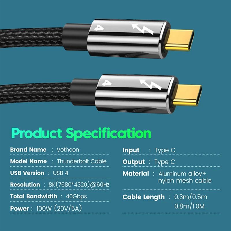 Comprar Cable Thunderbolt 4 40Gbps Transferencia de datos PD 100W Cable USB C 8K 5K 4K 60Hz Cable cargador tipo pantalla C