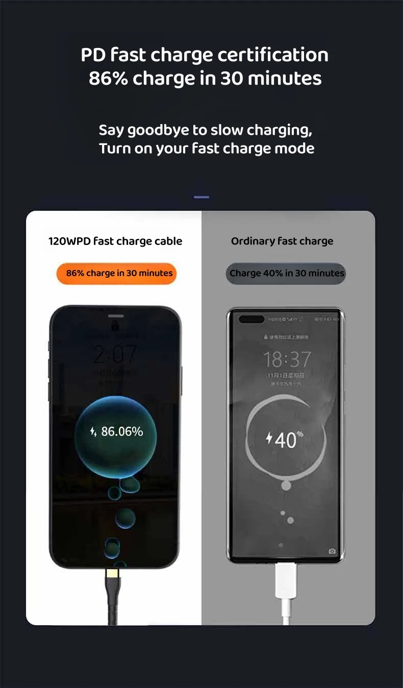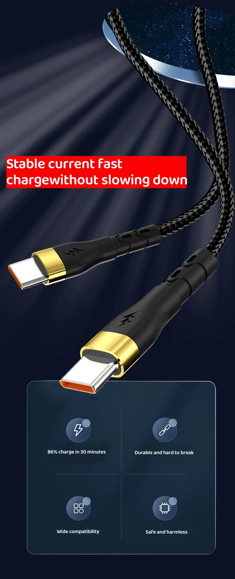 120W Type C Cable Fast Charging Type C to Type C Wire Cord For Samsung S23 Huawei Xiaomi C To C Type C USB C Cable Accessories