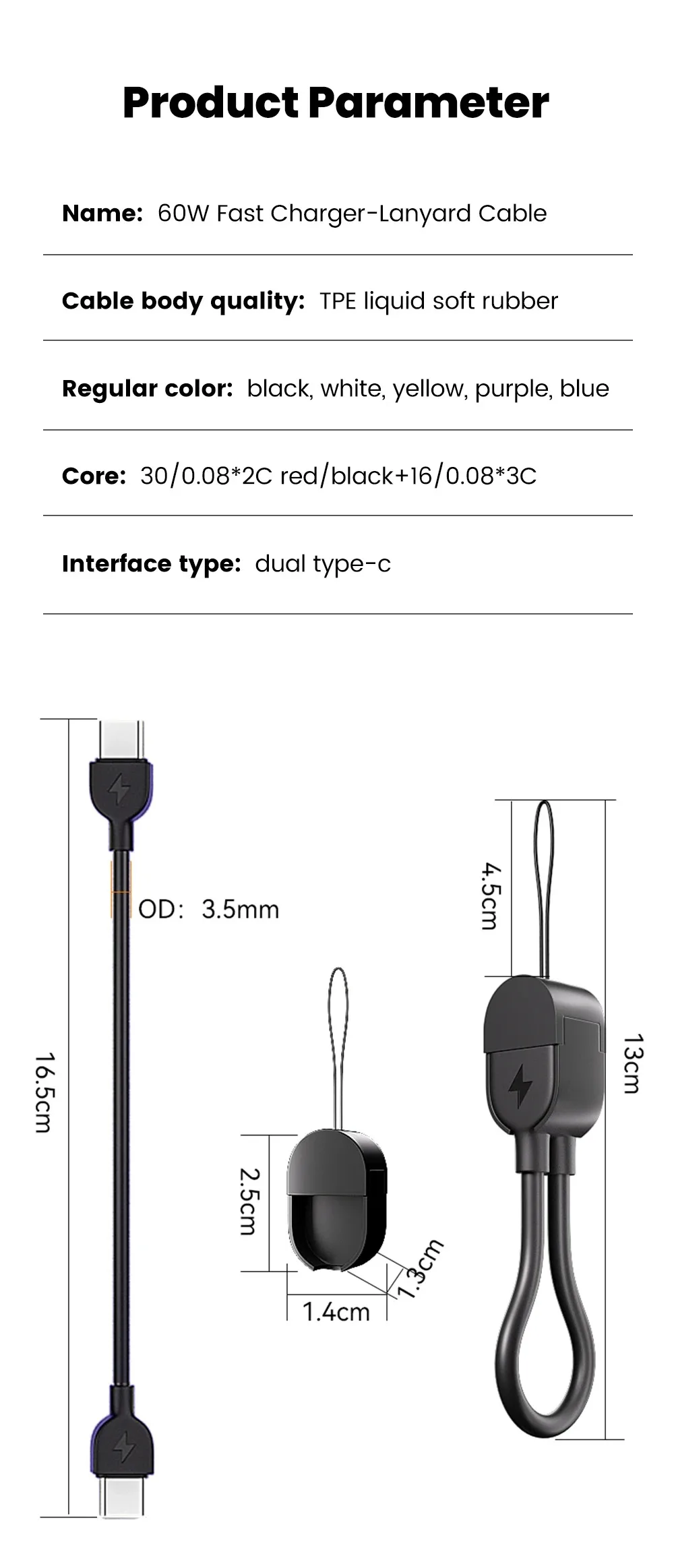 Cable tipo C de 60W, llavero de 16,5 cm, carga rápida, corto, portátil, Cable de datos tipo C a USB C para iPhone 15 16 Huawei Xiaomi Samsung
