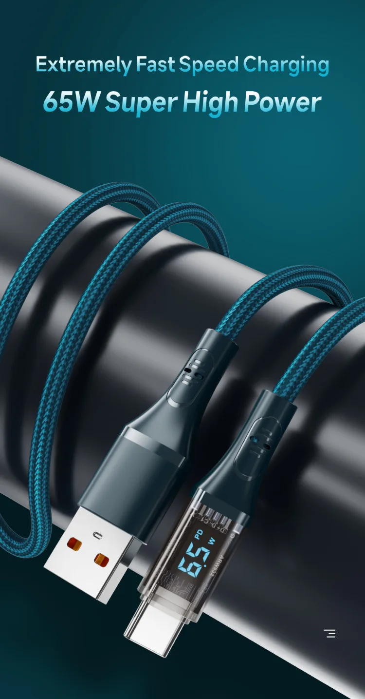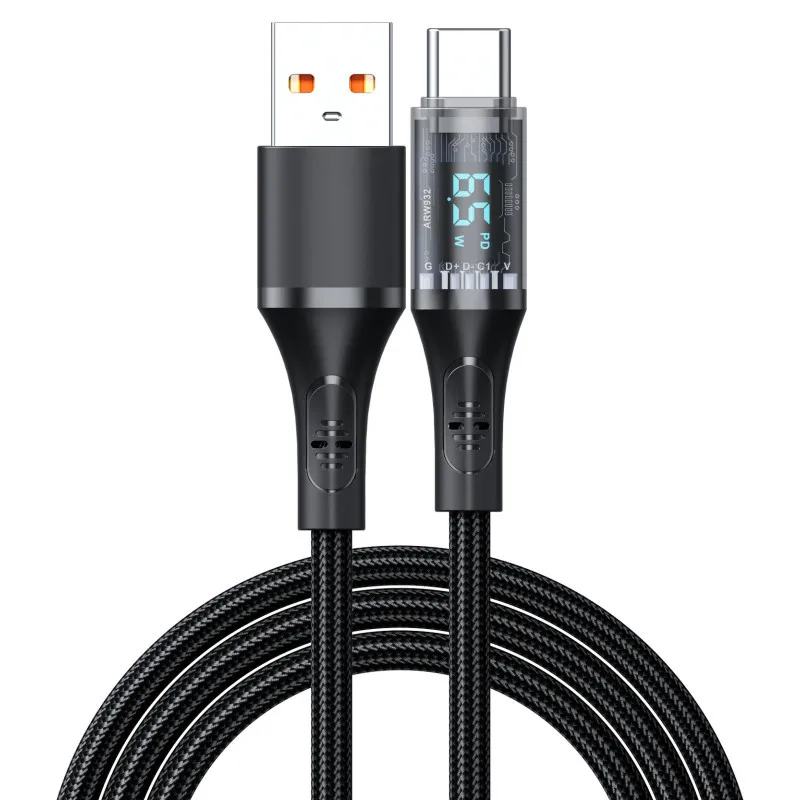 Cable USB C 6A PD 65W pantalla Digital carga rápida tipo C Cable de datos para Samsung Xiaomi Huawei carga rápida USB tipo C Cable