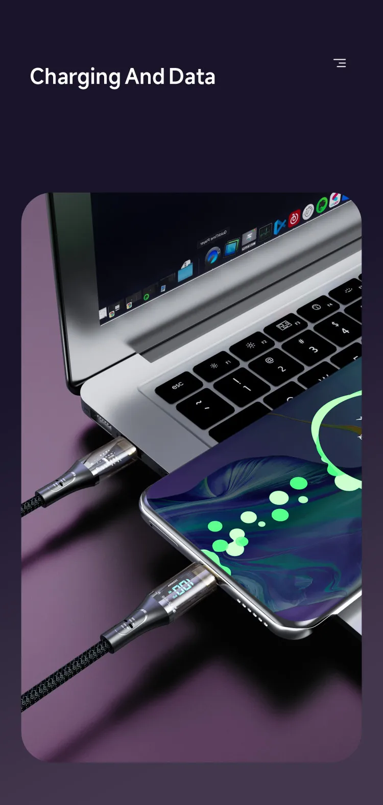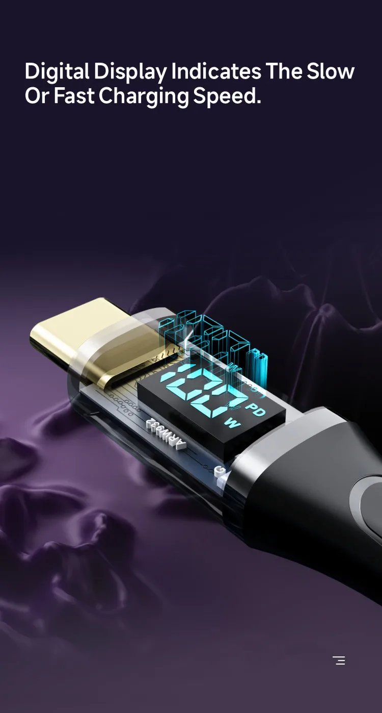 Este cable integrado en el chip inteligente E-marker, visualización en tiempo real del estado de carga
