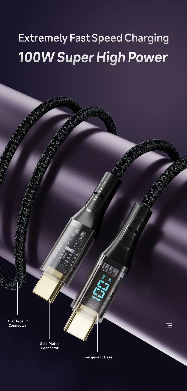 Comprar Cable tipo C a tipo C de 100W, Cable de pantalla Digital de carga rápida 7A, PD, para Macbook, iPhone 15 Pro Max, Xiaomi 13, 12, Oneplus, POCO X5
