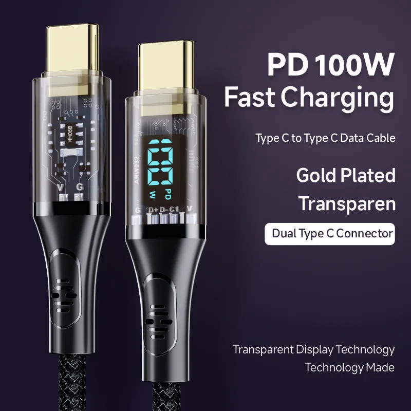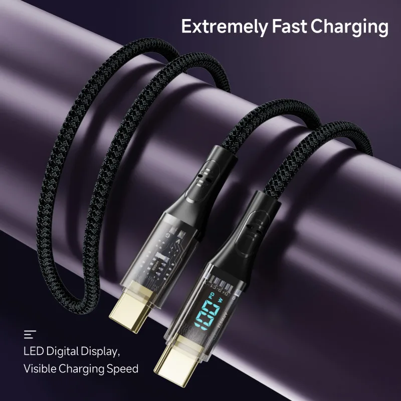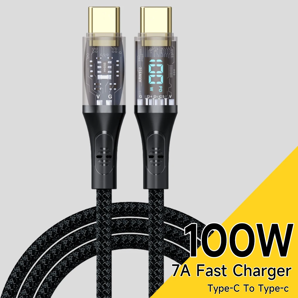 Comprar Cable tipo C a tipo C de 100W, Cable de pantalla Digital de carga rápida 7A, PD, para Macbook, iPhone 15 Pro Max, Xiaomi 13, 12, Oneplus, POCO X5