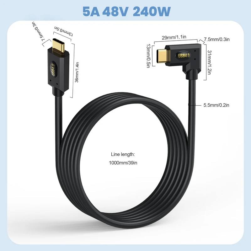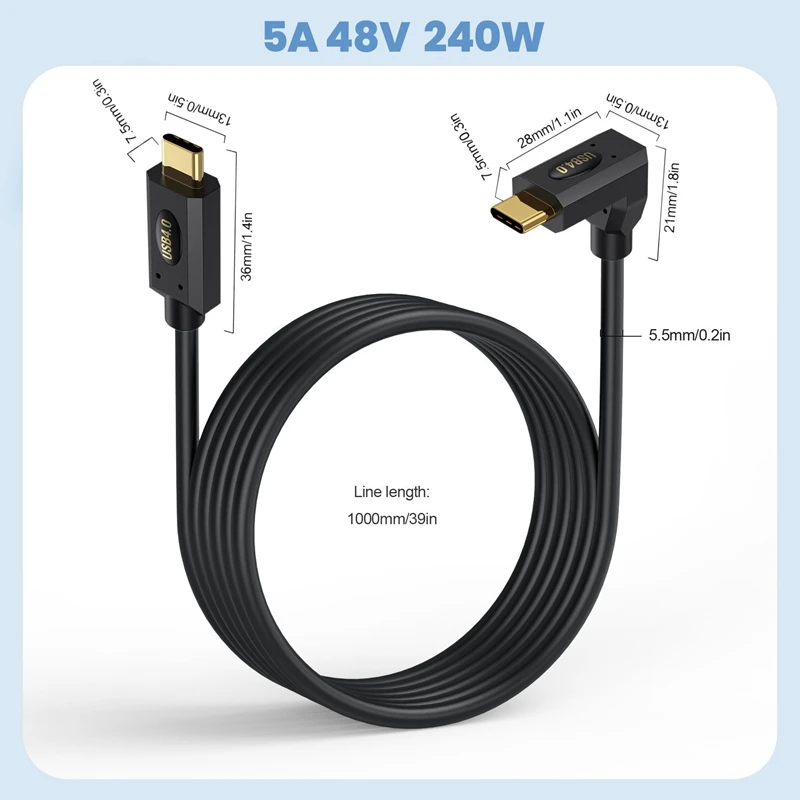 Compatible con una fuente de alimentación de hasta 240W (48V/5A), el cable de carga rápida USB tipo C de doble cabezal puede satisfacer plenamente las necesidades de carga rápida, Y puede cargar casi cualquier dispositivo, desde teléfonos móviles, accesorios hasta portátiles para juegos.