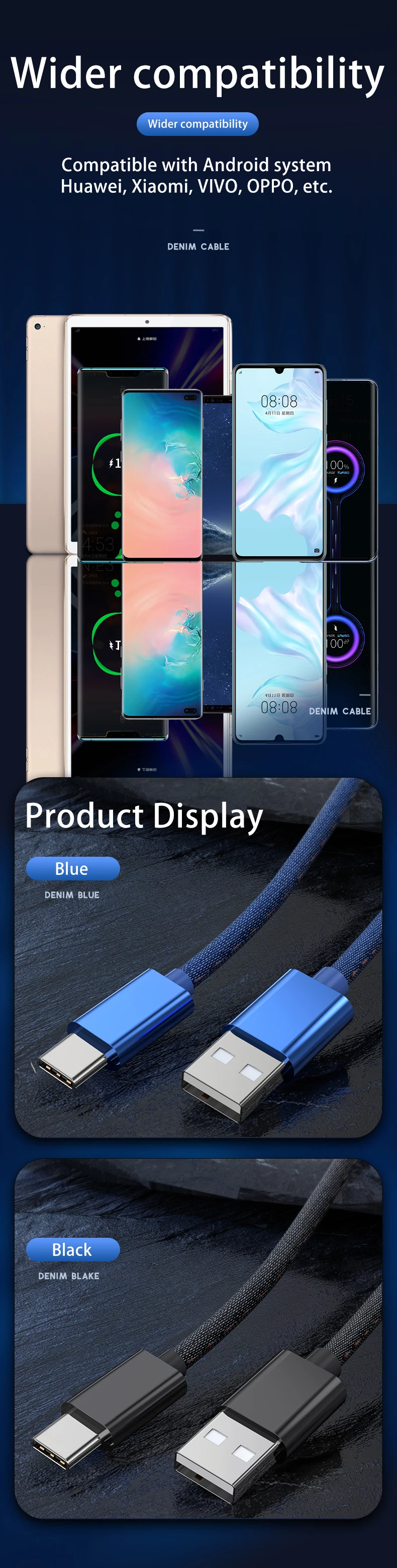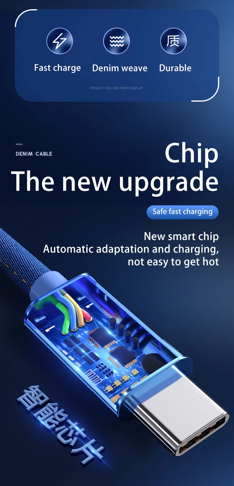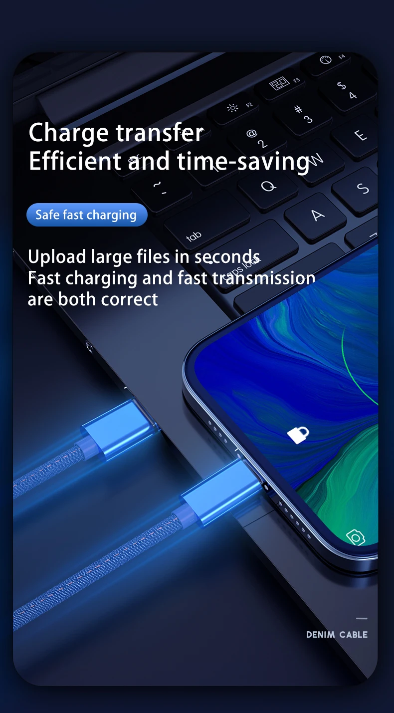 Comprar Cable tipo C de carga rápida para teléfono móvil, Cargador USB tipo C de tela vaquera tejida de 66W y 5A para Samsung, Huawei, Xiaomi, Redmi POCO
