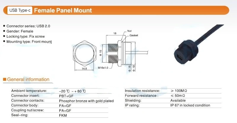Cable impermeable IP67 tipo C IP 67 macho a hembra montaje en Panel conector a prueba de agua cable de extensión 30cm
