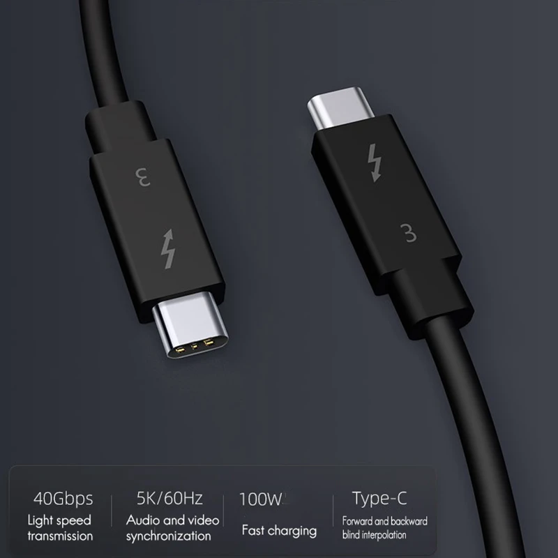 Comprar Cable tipo C para Thunderbolt 3, Cable de datos de 40Gbps, velocidad completa, 100W, carga rápida, transmisión 5K, 50cm