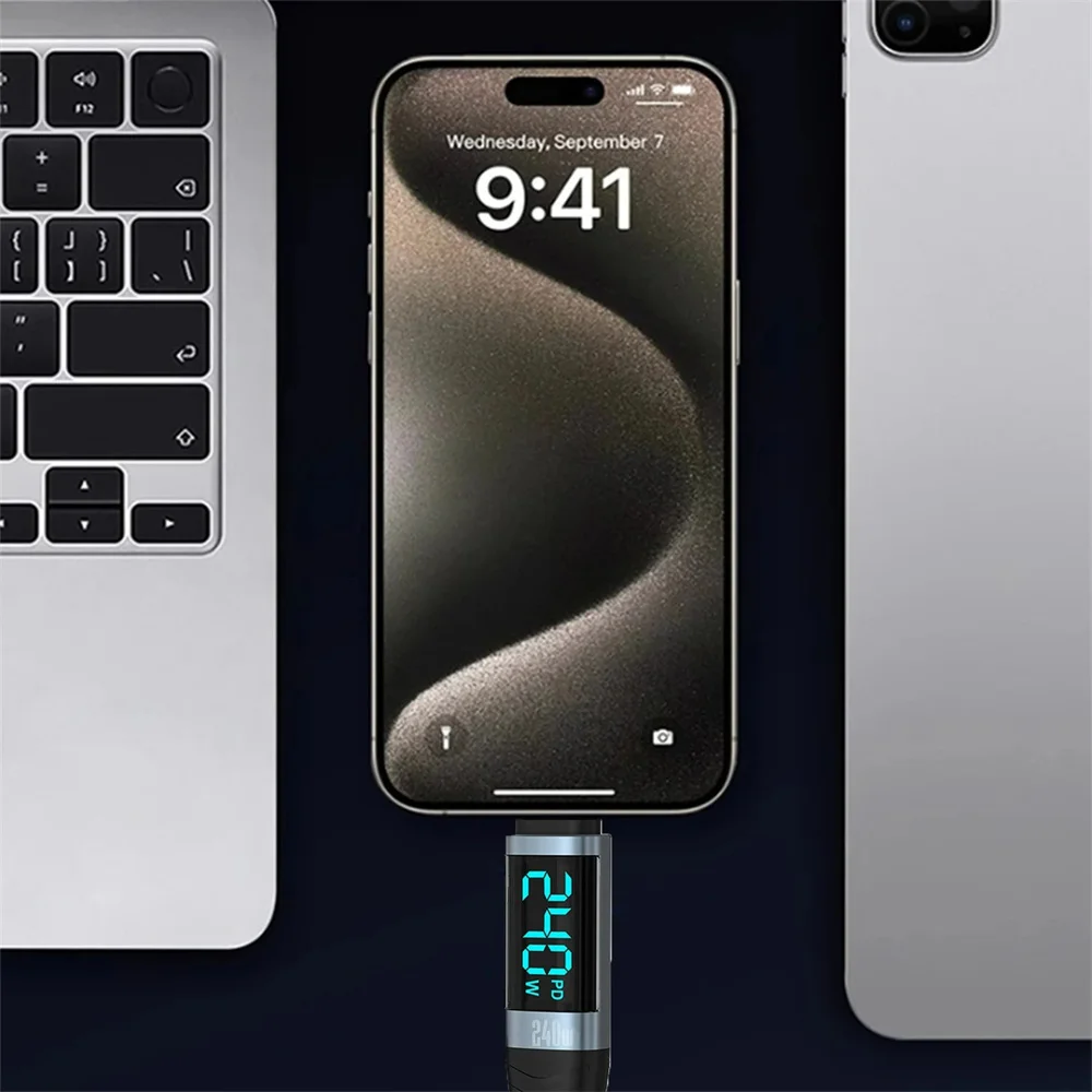 Cable tipo C a tipo C 240W pantalla Digital súper carga 0,5 m-2m Cable de datos USB C para Iphone 17 16 Samsung S24 S23 Huawei Xiaomi