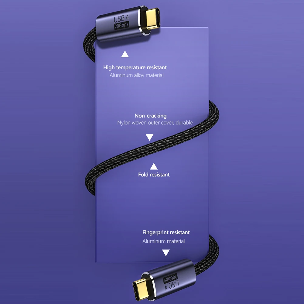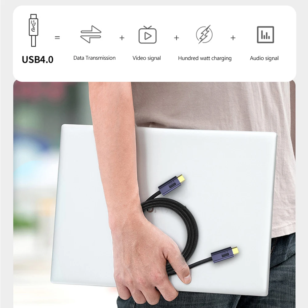 PD 100W USB 4,0 Tipo-C Macho a macho Cable de datos de transferencia de carga rápida 20Gbps 8K 60Hz Cable cargador con chip Emark