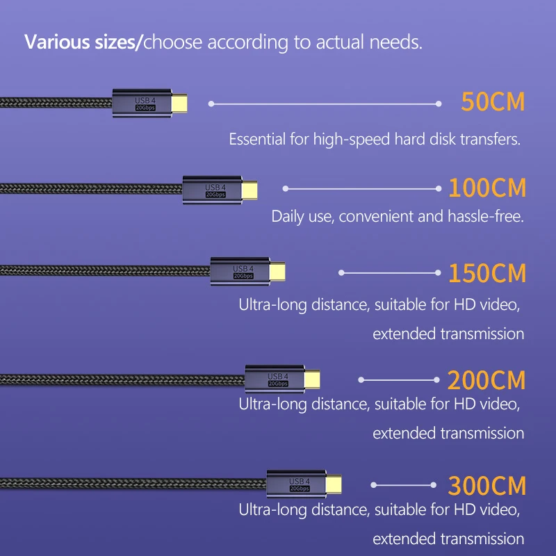 7. Varios tamaños/seleccionados según las necesidades reales. Se necesita Transmisión de disco duro de alta velocidad de 50cm; uso diario de 100cm, conveniente y sin preocupaciones; Distancia ultra larga de 150cm, 200cm, 300cm, adecuado para vídeo HD y transmisión extendida.