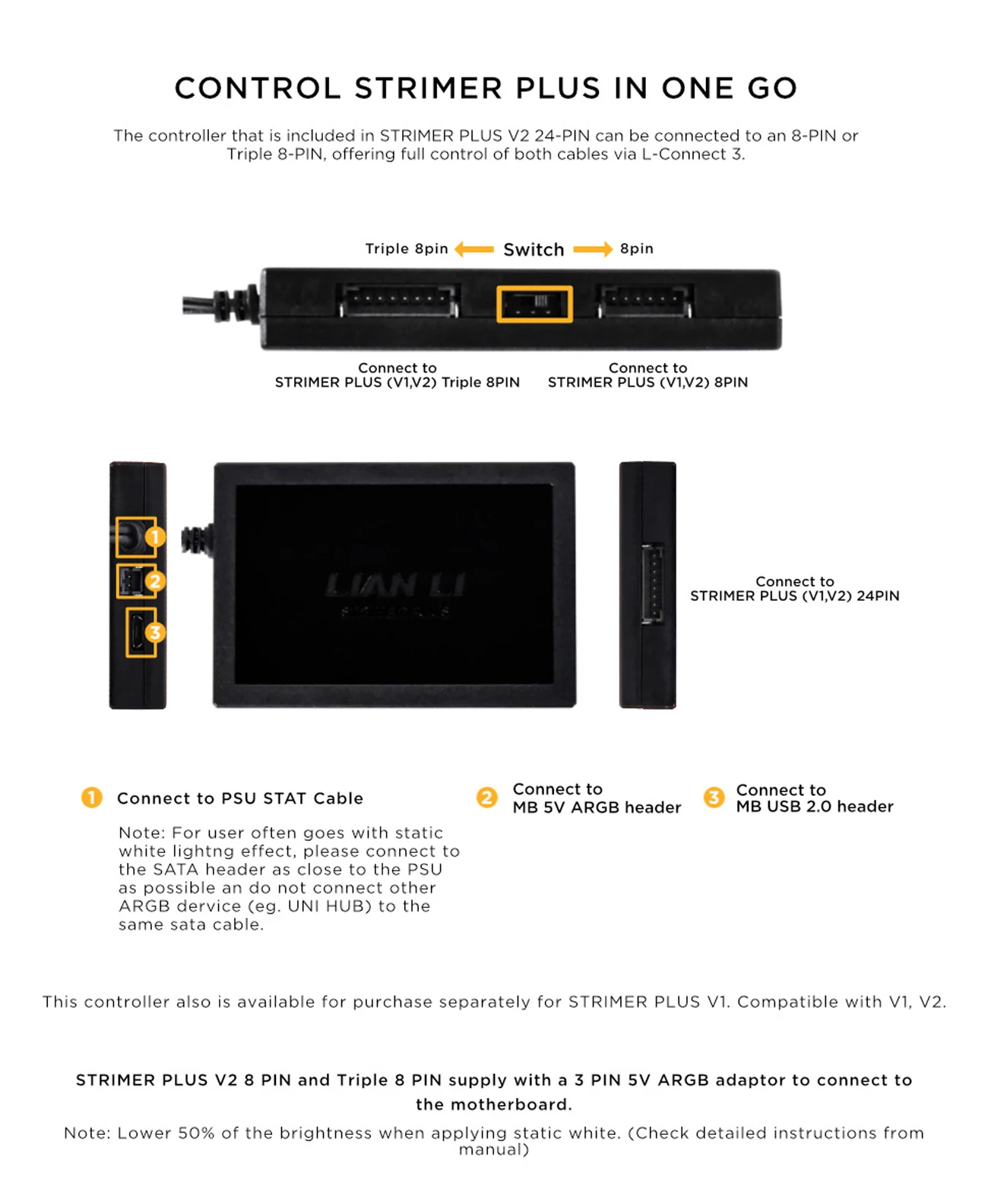 Modelo: Lian Li direccionable RGB Strimer Plus Triple 8-Pin
