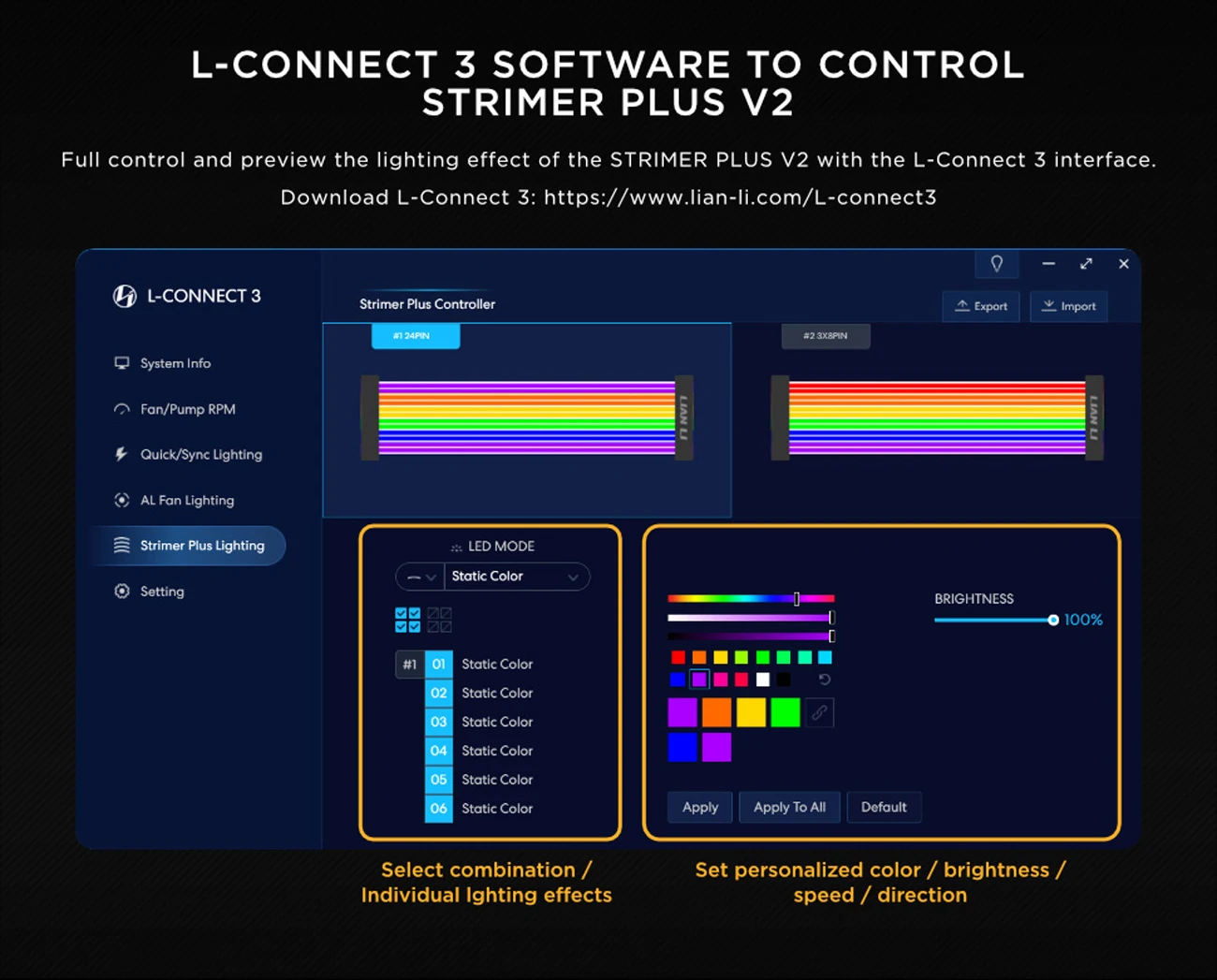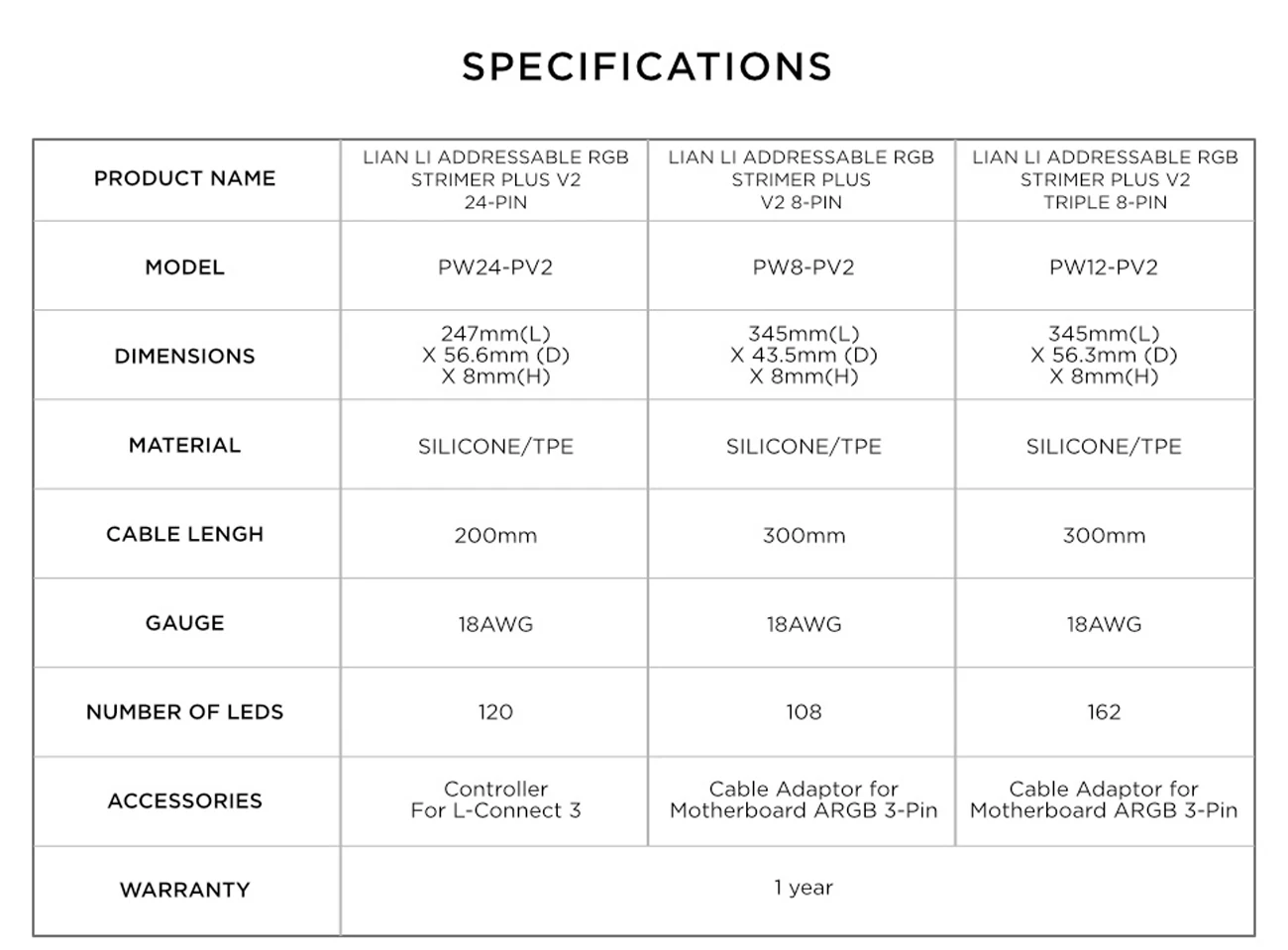 Modelo: Lian Li direccionable RGB Strimer Plus doble de 8 pines