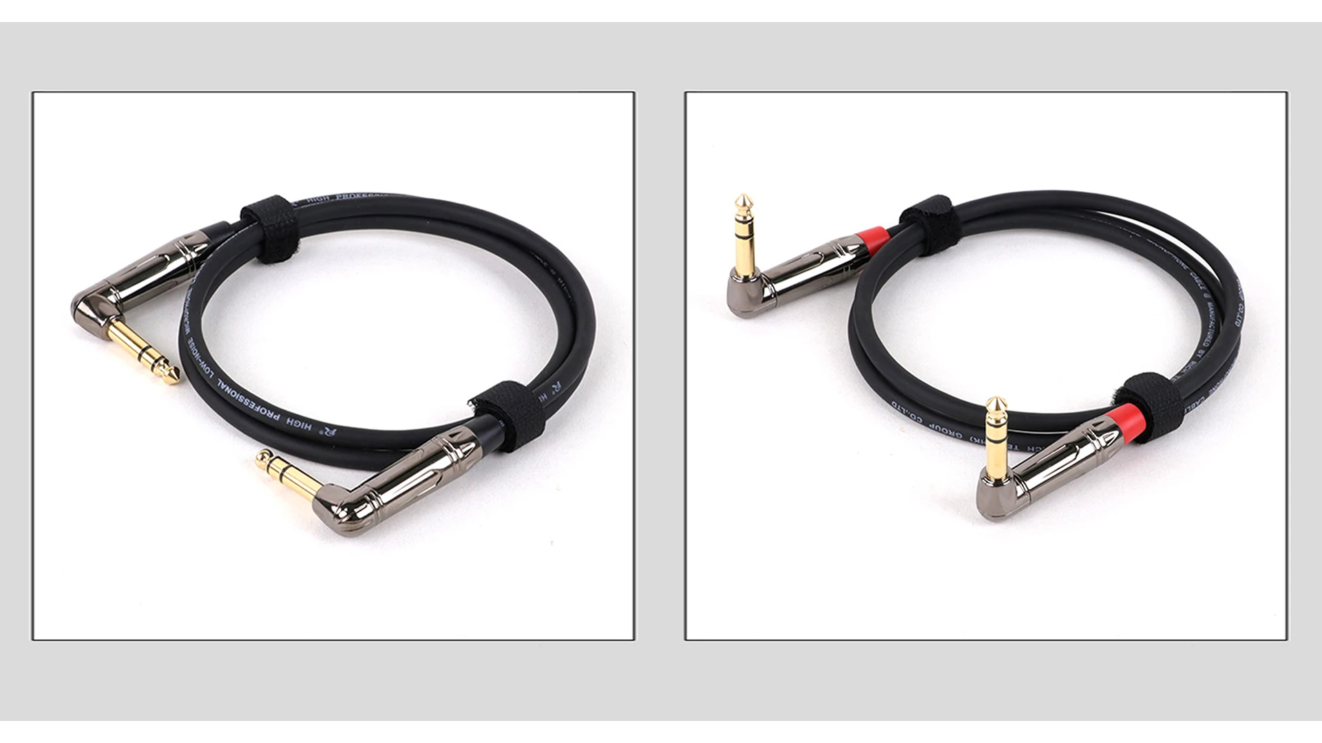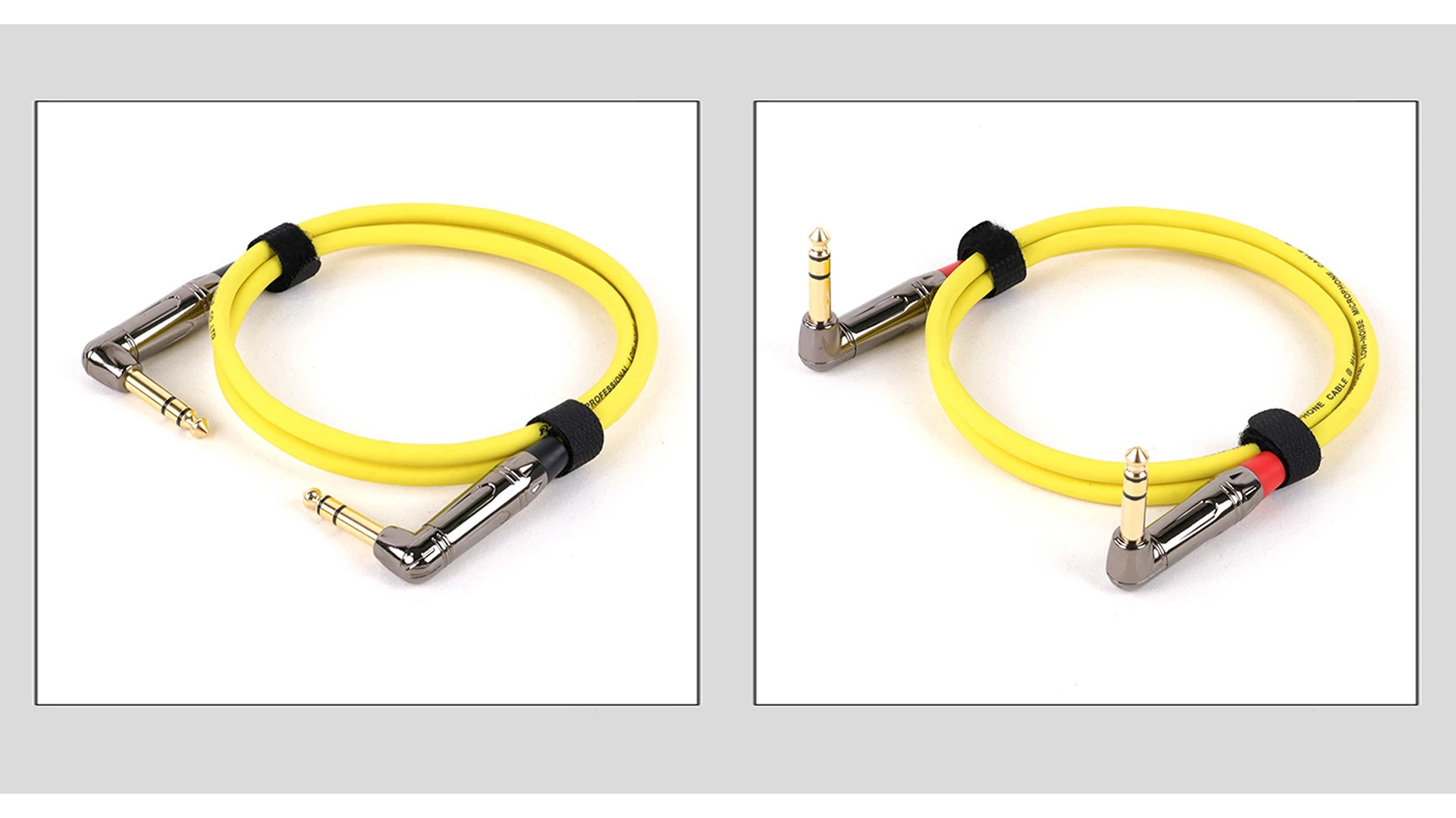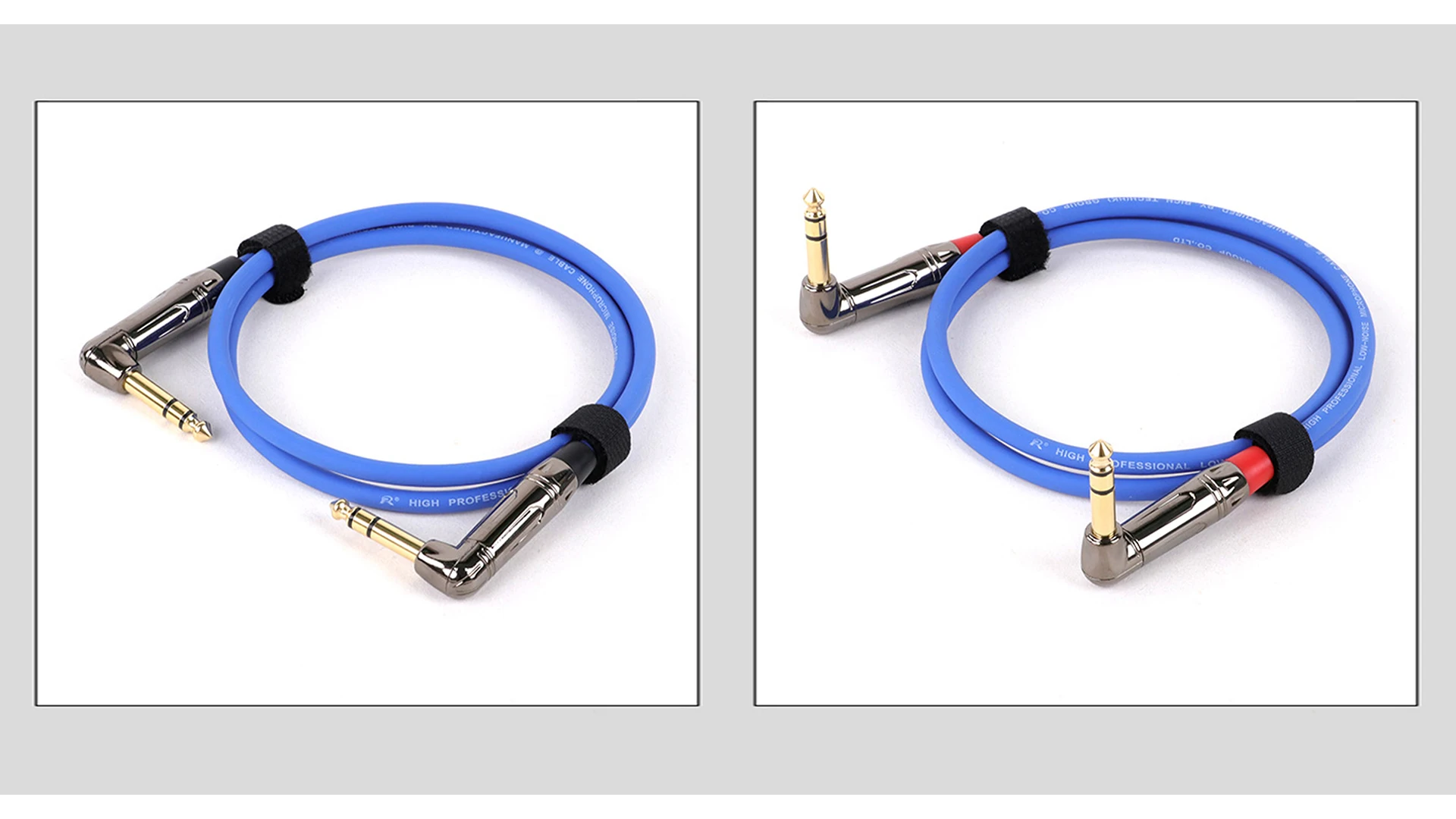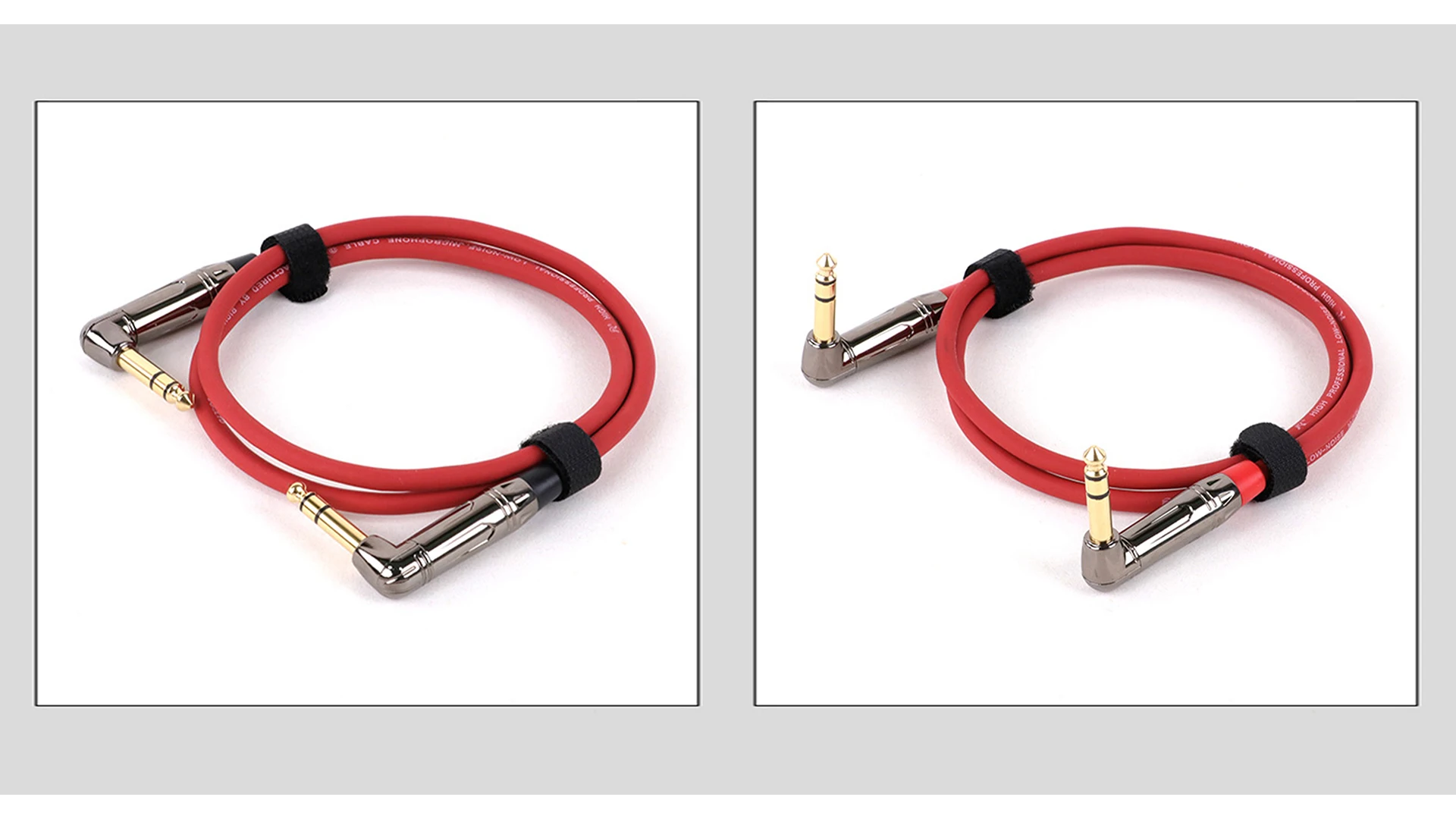 5. Conector macho estéreo de ángulo recto de 6,35mm a conector macho estéreo de ángulo recto de 6,35mm con conectores coloridos + chapados en oro que proporcionan un sonido nítido y de primera línea