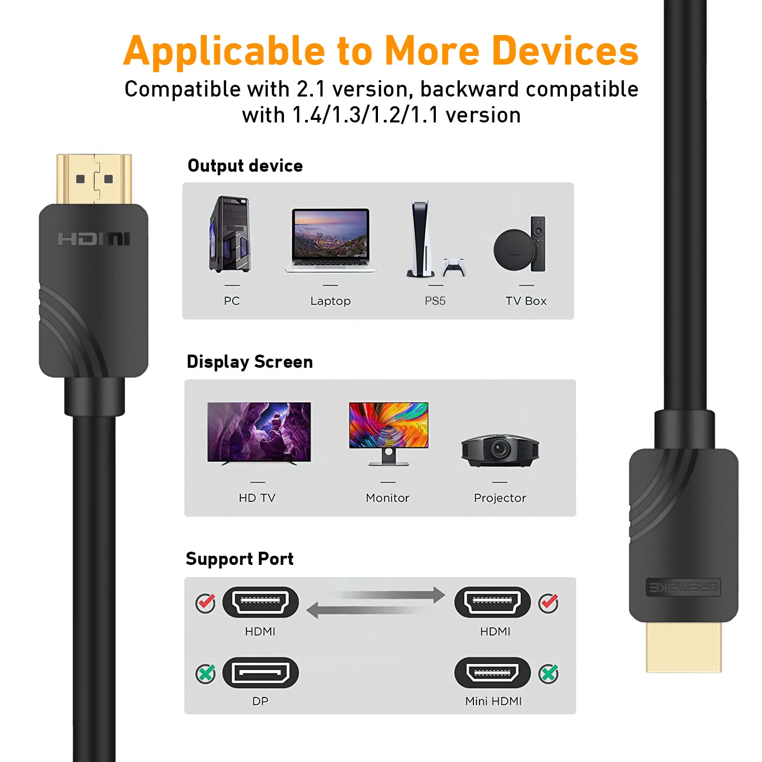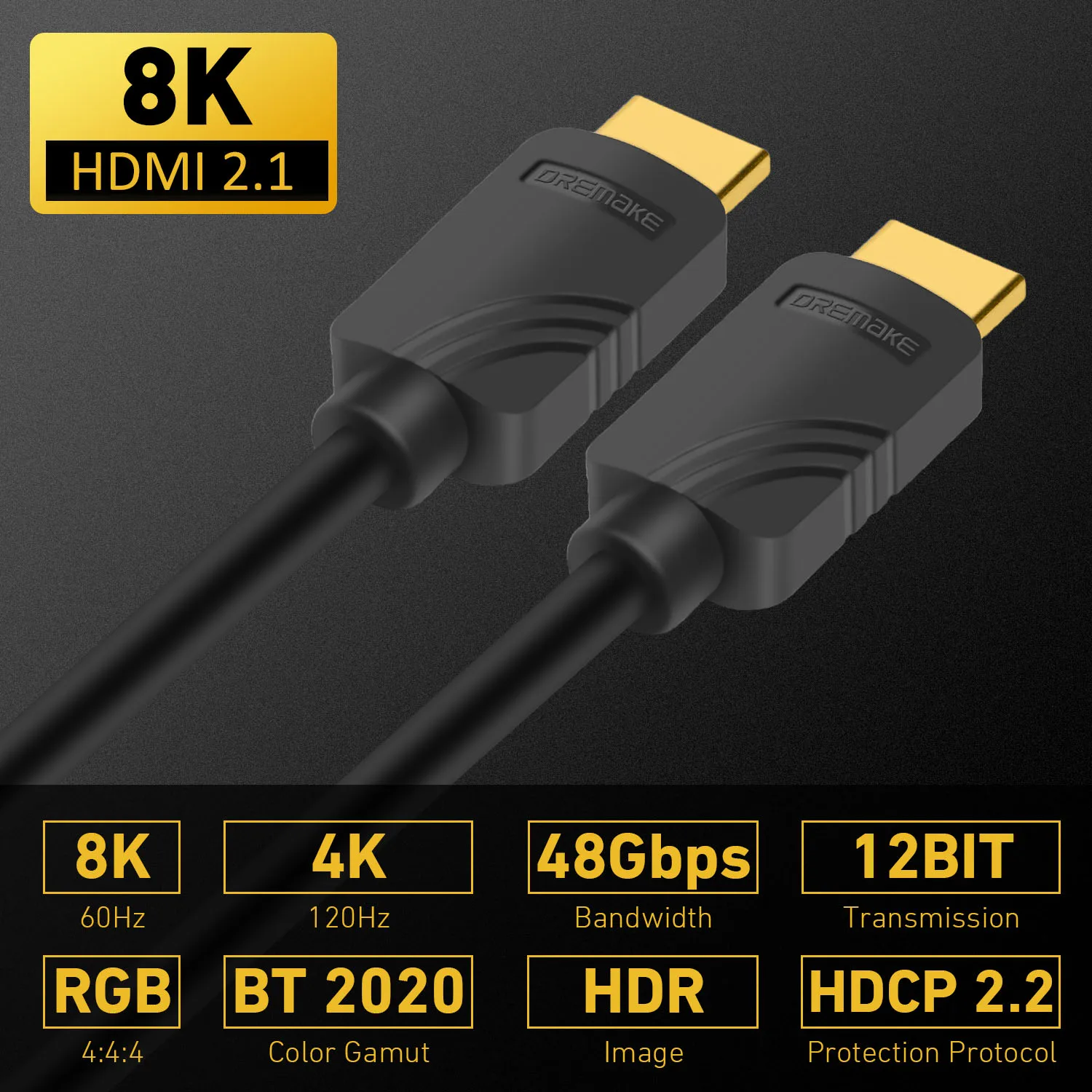Contenido del paquete1 x cable 2,1 compatible con HDMI de alta velocidad DREMAKE UHD (empaquetado en una caja)