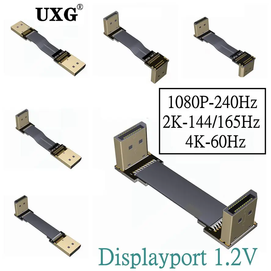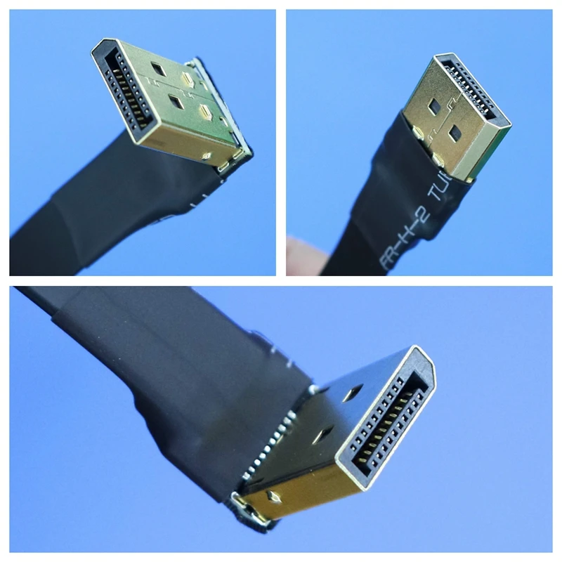 Comprar Cable Ultra 8K FHD DisplayPort macho a DisplayPort, adaptador de conector en ángulo de 90 grados hacia arriba y hacia abajo, Cable plano DP FPC FPV 4K 60Hz