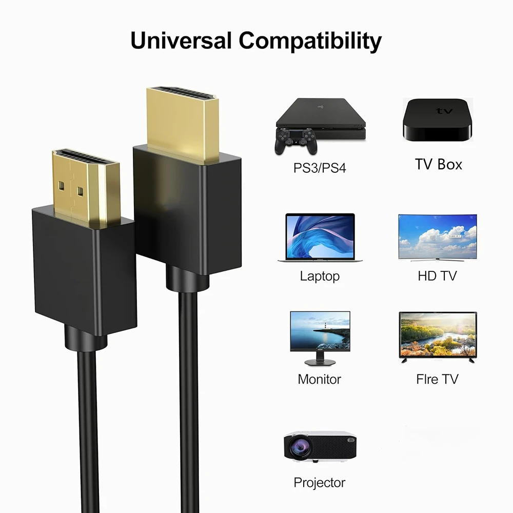 1.Ultrafino y flexible: este cable HD ultrafino y flexible de alta velocidad encaja perfectamente en espacios reducidos, admite todas las características en un diseño suave y delgado, fácil de transportar y usar.
